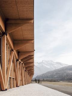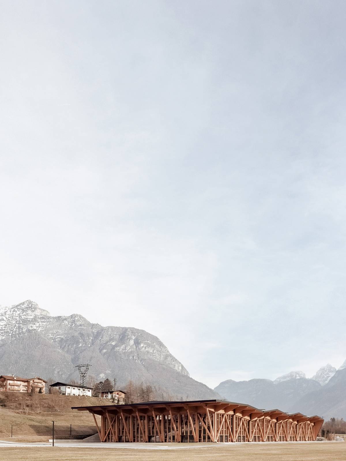 該建筑群的設(shè)計(jì)靈感來自阿爾卑斯山谷的典型建筑(塔比婭),采用木框架和交叉支撐元素。支撐結(jié)構(gòu)的設(shè)計(jì)是采用木材,既考慮到環(huán)境的兼容性,又符合阿爾卑斯山建筑傳統(tǒng),并從中汲取靈感。