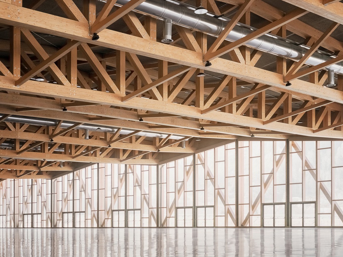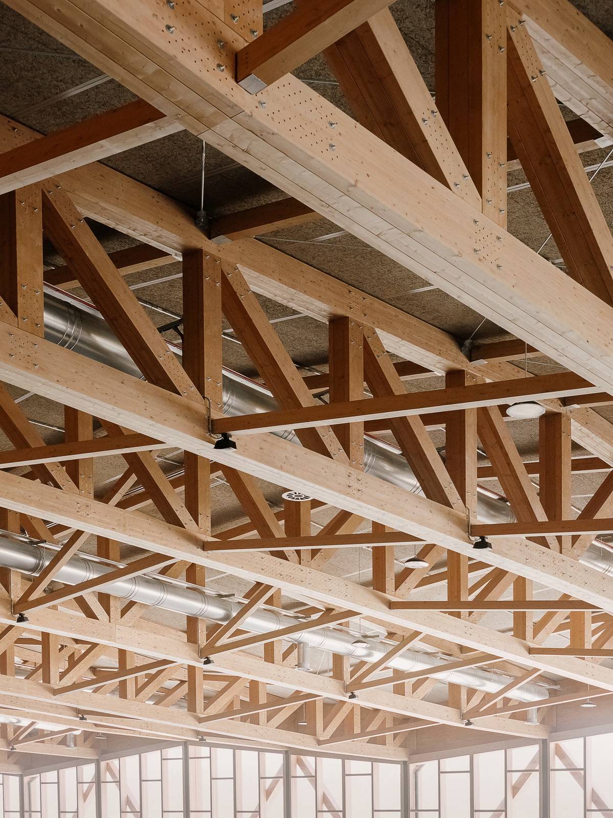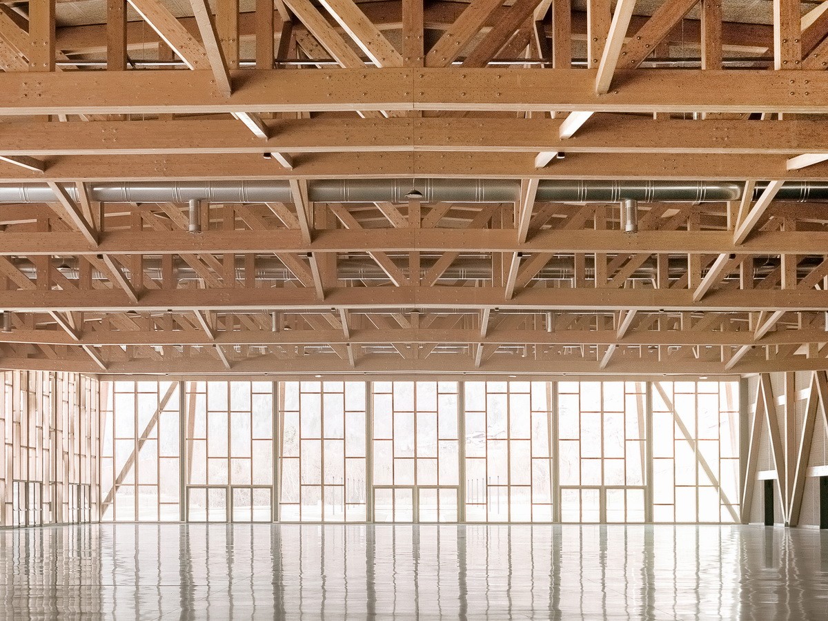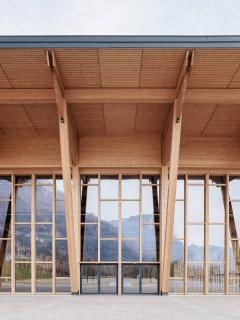 玻璃幕墻上方的大懸挑屋頂保護(hù)游客入口和木質(zhì)結(jié)構(gòu)免受大氣因素的影響。它還可以在夏季保護(hù)主大廳不受陽光直射,在冬季讓太陽能進(jìn)入,以降低冷卻和加熱通風(fēng)的成本。