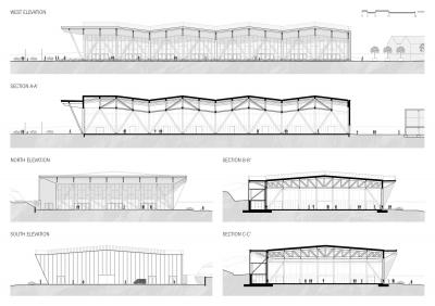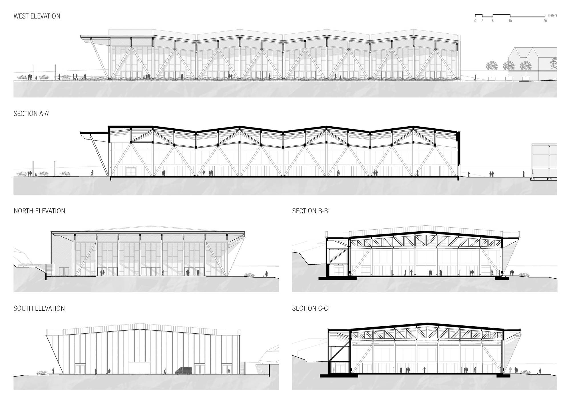 該項(xiàng)目著眼于阿戈多的典型景觀和城市形態(tài),創(chuàng)造一種新的語言。該建筑的特點(diǎn)是一個(gè)重復(fù)的傾斜屋頂,在周圍景觀里,從南到北勾勒出一個(gè)可識(shí)別的標(biāo)志。
