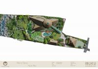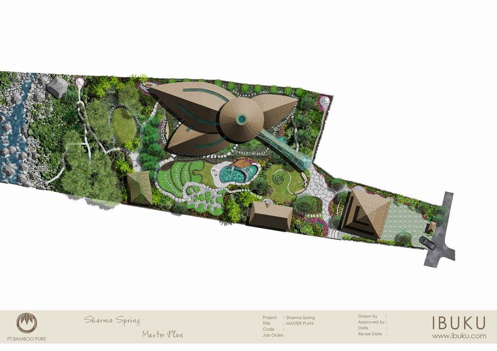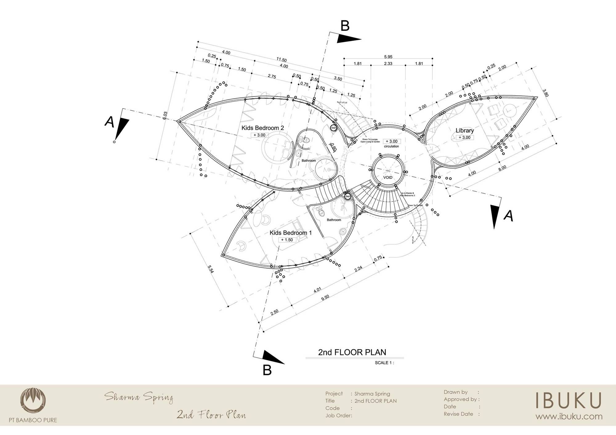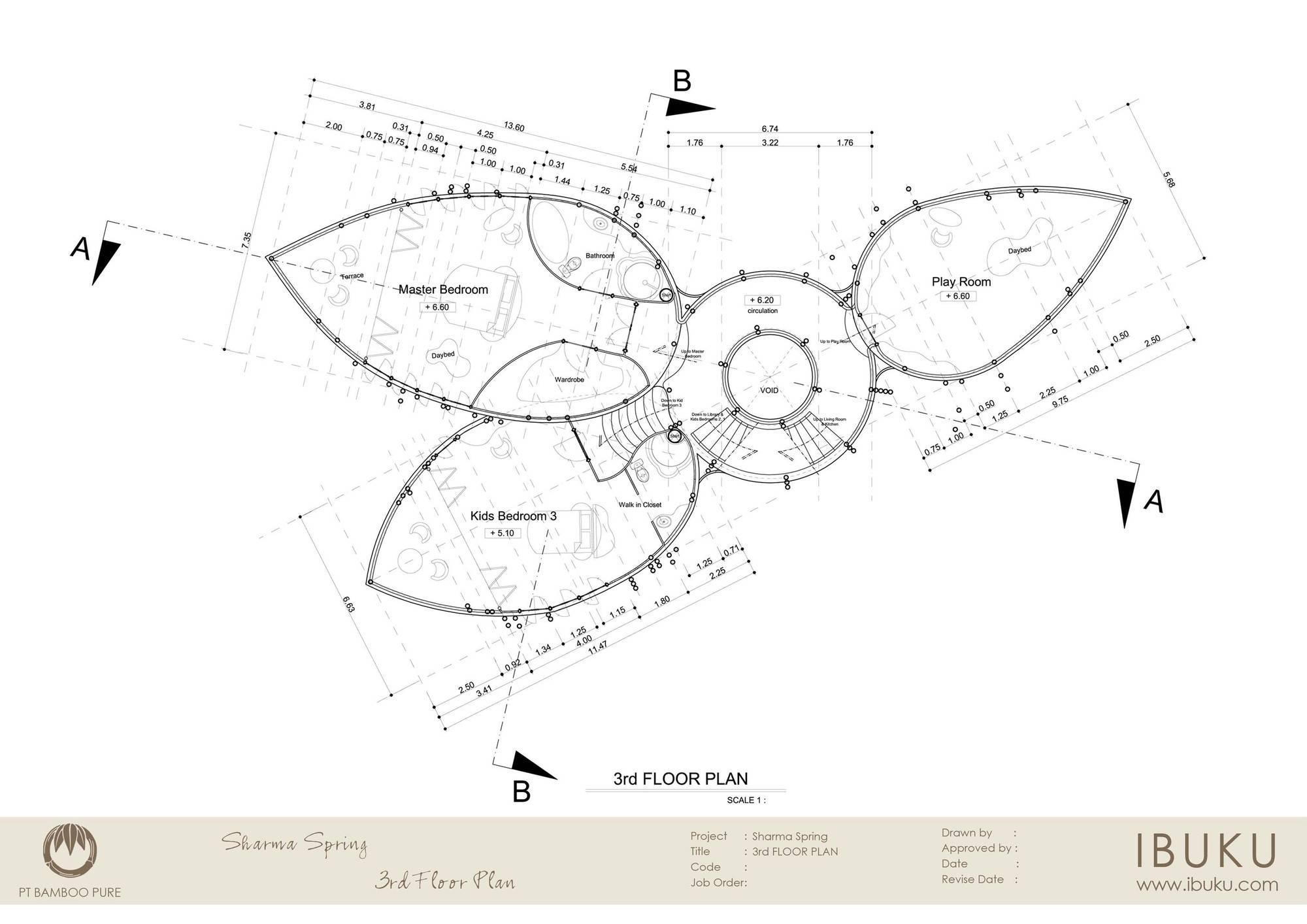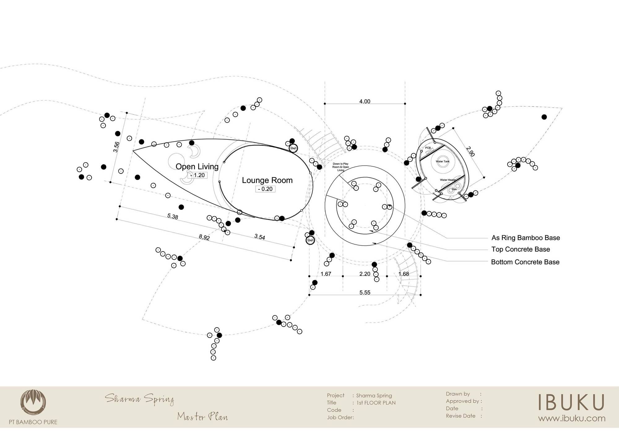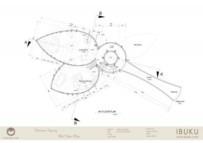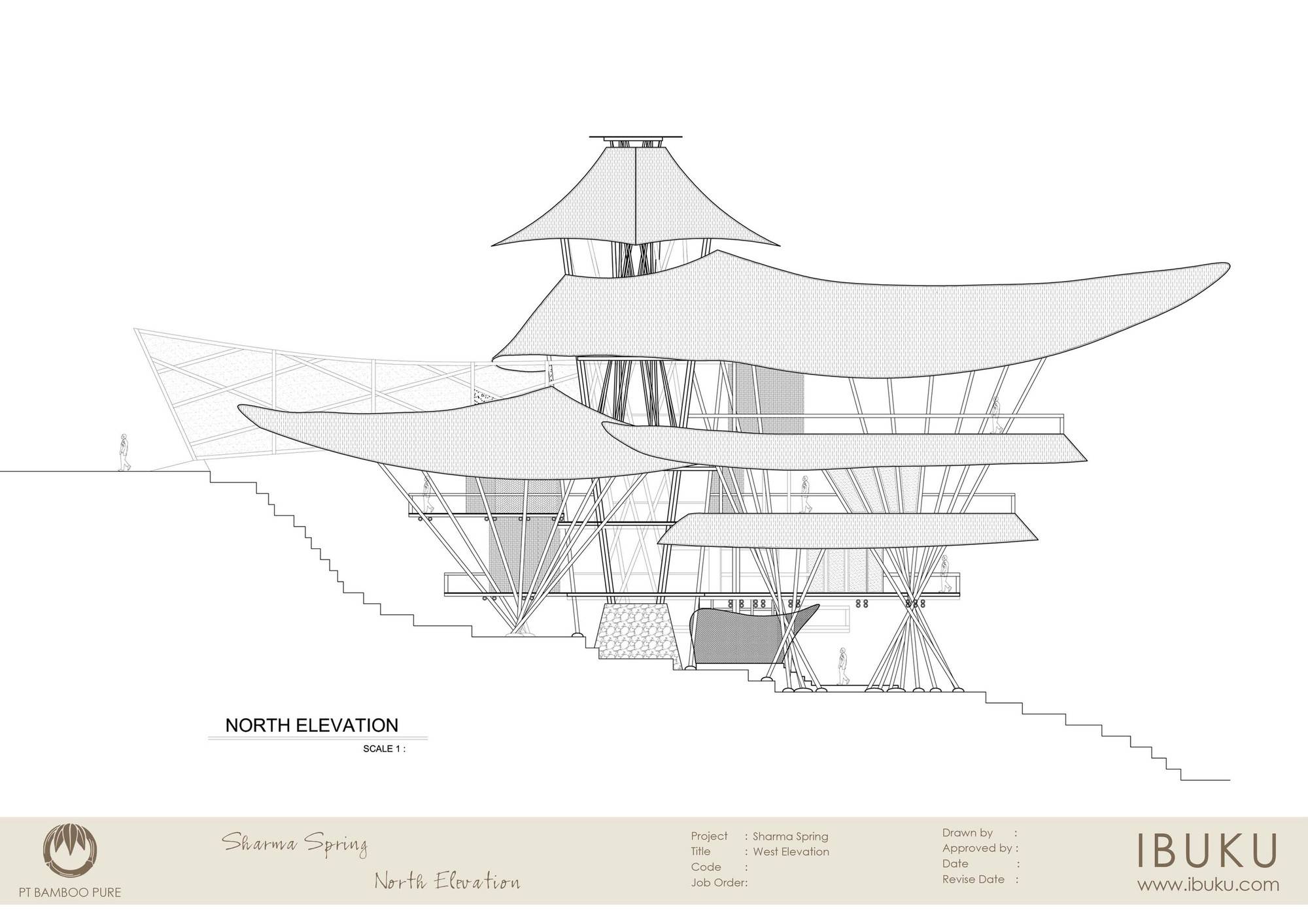 樓梯圍繞著中央塔旋轉至下方的樓層:一個游戲室,四個臥室和一個圖書館,每個房間都配有全長旋轉玻璃門窗,以便封閉起來使用空調。六層觀景臺是一個前傾的平臺,提供座位休息區(qū),可以欣賞到阿漾(Ayung)河谷和格林村令人驚嘆的日落美景。