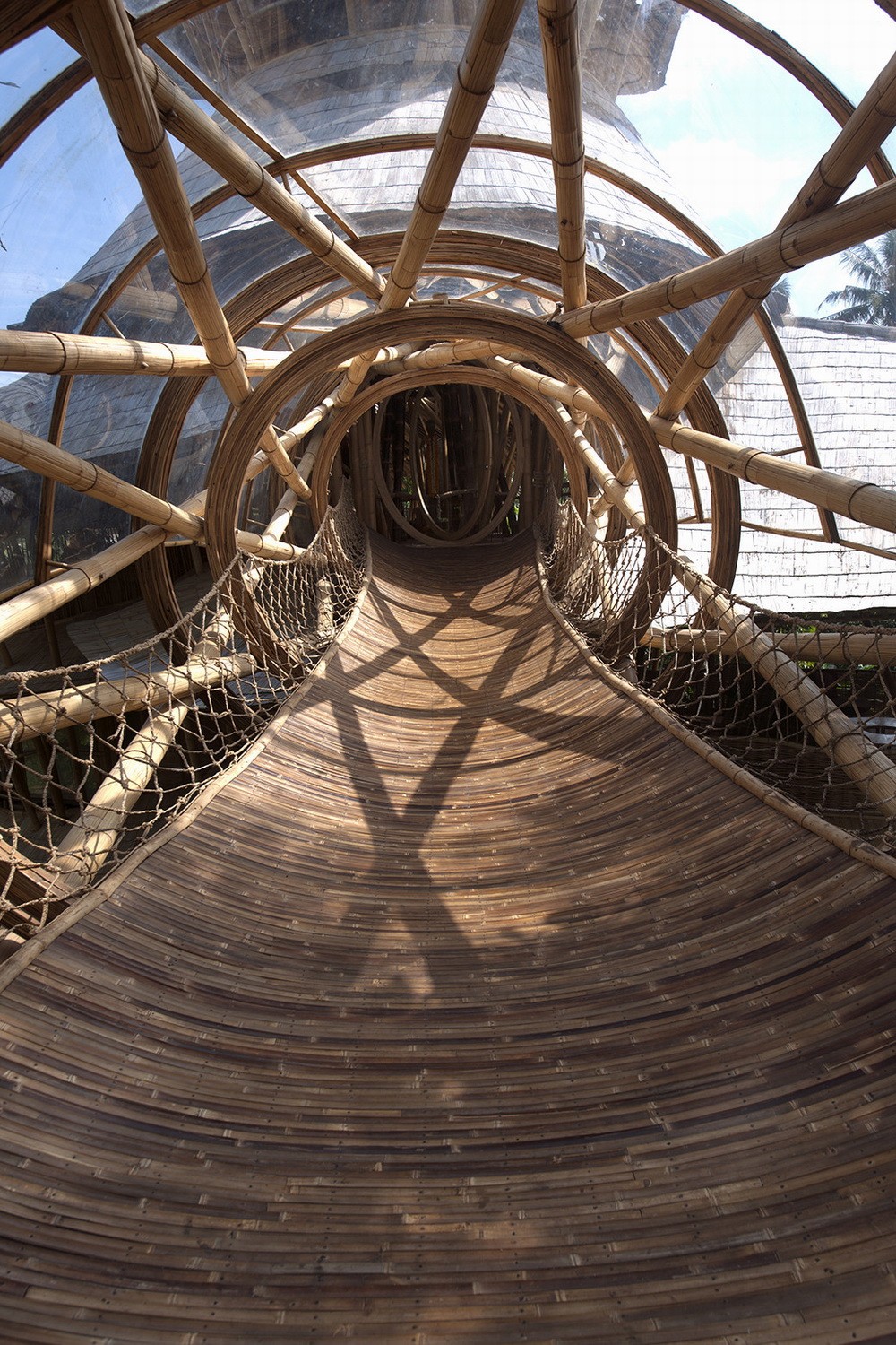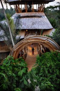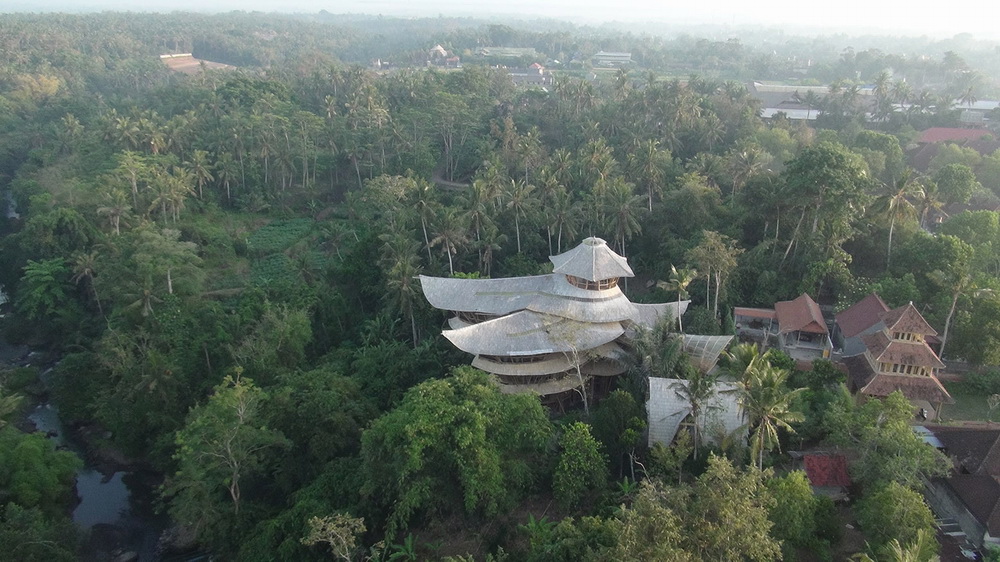 夏爾馬“葉子”小屋是為夏爾馬一家設計的叢林間的奇幻逃離。這是一個6層,4間臥室,750平方米的住宅,幾乎全部由竹子打造,俯瞰著阿漾(Ayung)河谷。進入房子的入口是一個戲劇性的隧道橋,將你直接帶到位于四層的露天生活、餐飲和廚房區(qū)。