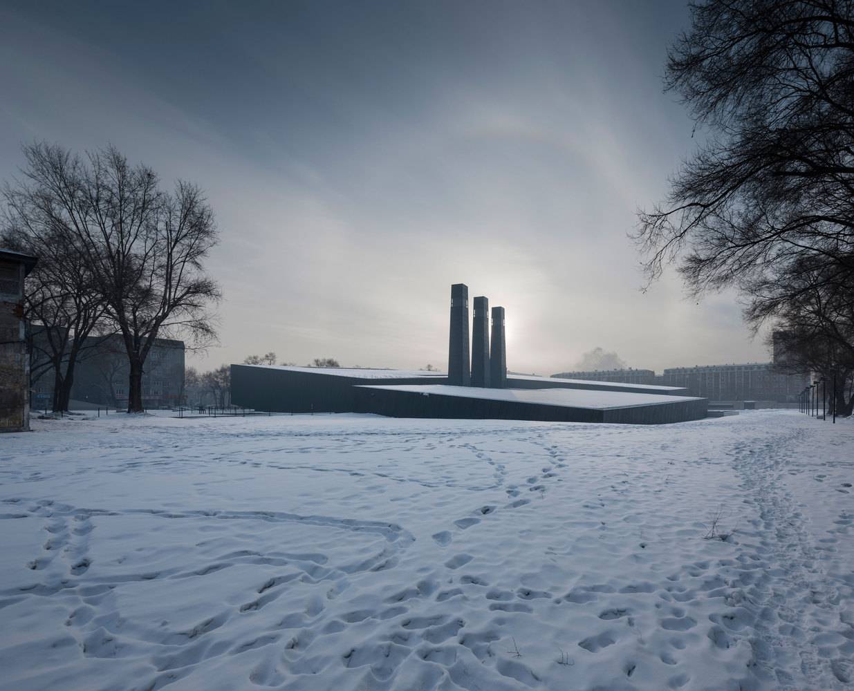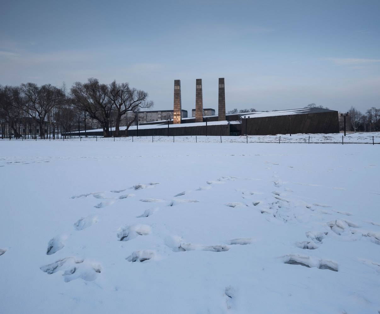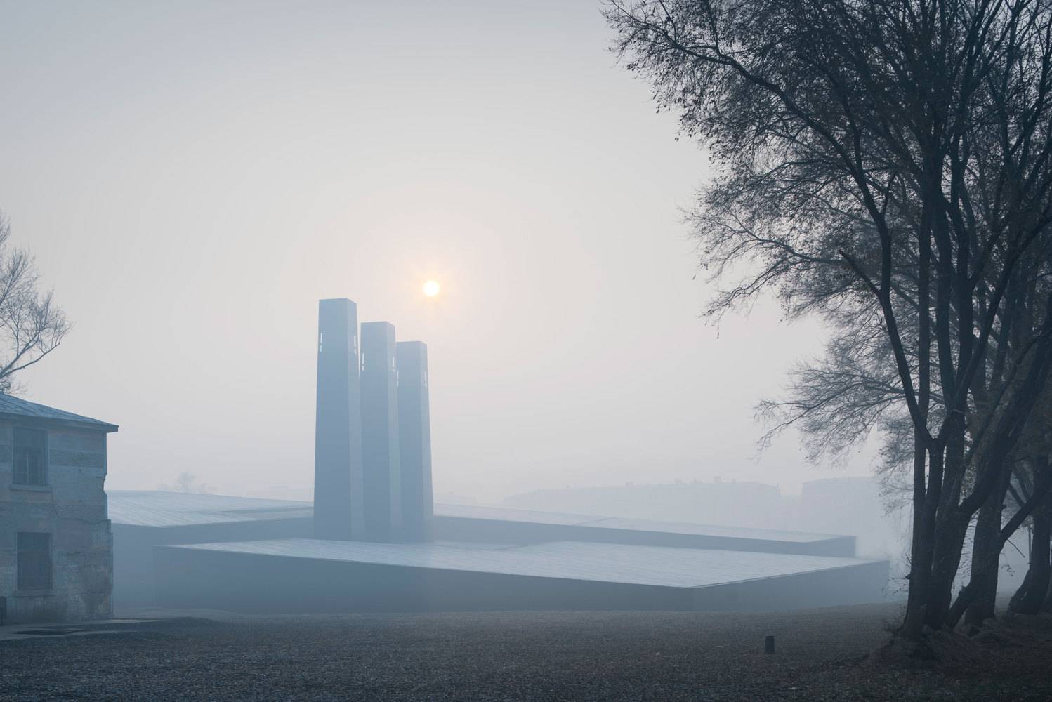 731部隊(duì)遺址所在的這片場(chǎng)地,不僅因?yàn)樽鳛闅v史事件的發(fā)生地而具有特殊性,周邊建筑遺址的殘壁斷瓦、砂石地的寂靜蒼茫、鐵軌的無邊延伸、榆樹的高大蕭瑟……在建筑師還來不及判斷和諧與不和諧之前,這些具體之物的組合已經(jīng)構(gòu)成了一種特有的場(chǎng)地氣質(zhì)。