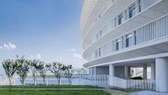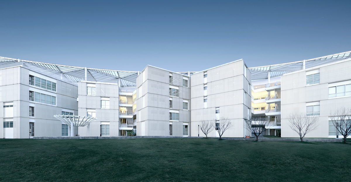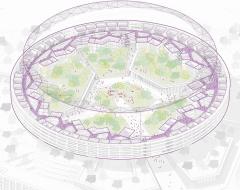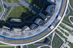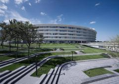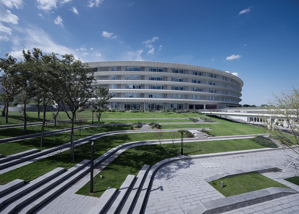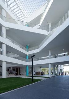 傳統(tǒng)的校園中,自然與教育像是兩個(gè)獨(dú)立的系統(tǒng),天然的被阻隔,而建筑師希望將自然引入校園。環(huán)形教學(xué)樓外是如同森林的狀態(tài),隔離城市的喧囂,環(huán)內(nèi)設(shè)置中心花園,疊落起伏,同時(shí)充分確保內(nèi)外的通透與關(guān)聯(lián)。
