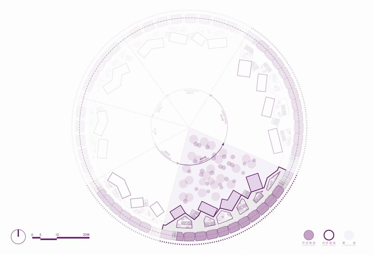 沿外環(huán)和內(nèi)環(huán)分布著大小不等的教學(xué)空間,環(huán)形外圈的教室在流線上更強(qiáng)調(diào)效率,內(nèi)部一般是活動(dòng)性比較強(qiáng)的選修課教室,自由錯(cuò)落分布。