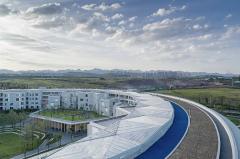 課堂之外,原本安靜的校園即刻煥發(fā)活力,學(xué)校內(nèi)設(shè)有足球場、籃球場等體育場地,環(huán)形建筑的樓頂同樣也是一條628米長的慢步道,少年們?cè)谑斋@知識(shí)的同時(shí),身體、個(gè)性、思想也得以塑造成長。