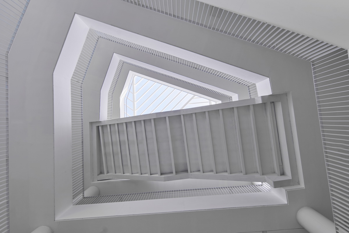 中學(xué)的課程安排通常是緊密的,對(duì)于學(xué)生和老師來說,空間的高效性與他們息息相關(guān),在短短的10分鐘下課時(shí)間內(nèi),他們需要短暫休息和為下一堂課做準(zhǔn)備。為實(shí)現(xiàn)高效的轉(zhuǎn)課路線,外環(huán)教室之間采用連續(xù)清晰的交通流線,內(nèi)環(huán)教室的路線則相對(duì)自由模糊,使得高效與趣味在空間行走中切換自如。