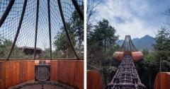 自由家樹屋世界坐落于安徽省黃山市休寧縣齊云山,是一個結(jié)合森林戶外游樂項目的體驗營地式樣度假別墅酒店項目,一期為15套散布在松林山崗間的獨(dú)立別墅式客房,由一眾頗具創(chuàng)造力和影響力的建筑師獨(dú)立設(shè)計,項目由于創(chuàng)意新銳、建造精良、運(yùn)營有序而聲名遠(yuǎn)播。二期為一期的迭代產(chǎn)品,業(yè)主提出了更大空間、更舒適體驗的定位要求。建筑師需要更多考慮親子出游的使用需求,強(qiáng)調(diào)客房的安全性、舒適性以及兒童趣味性。