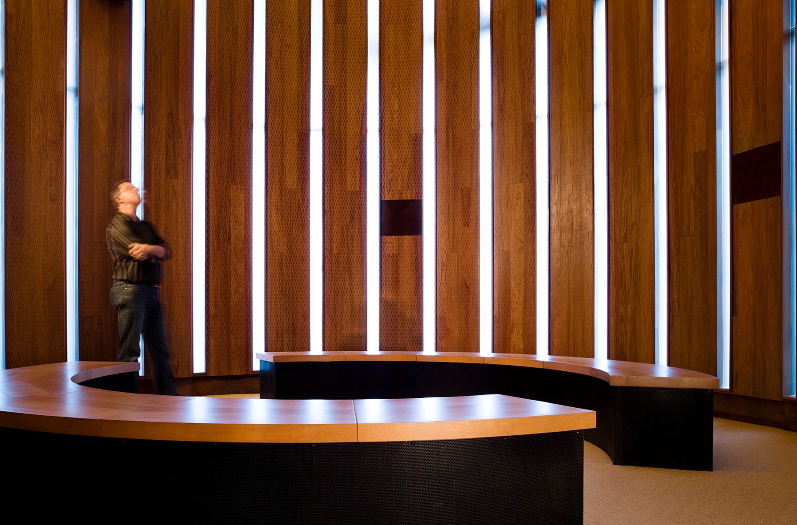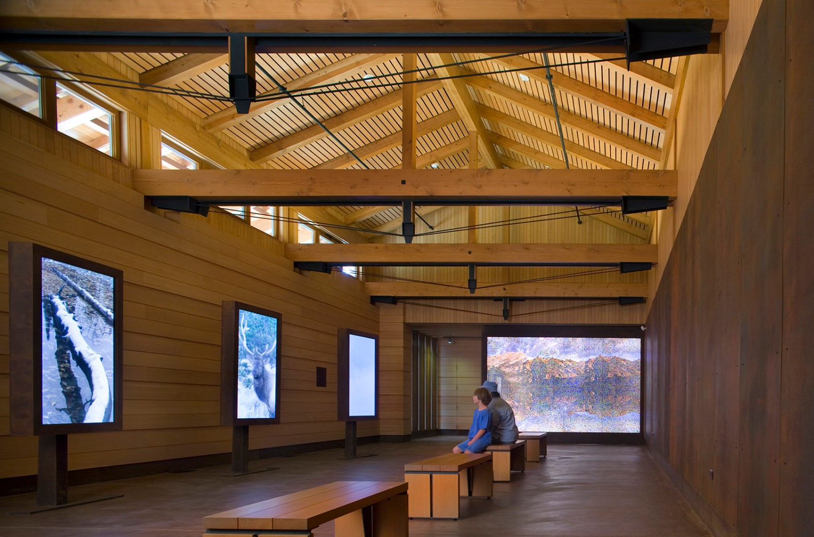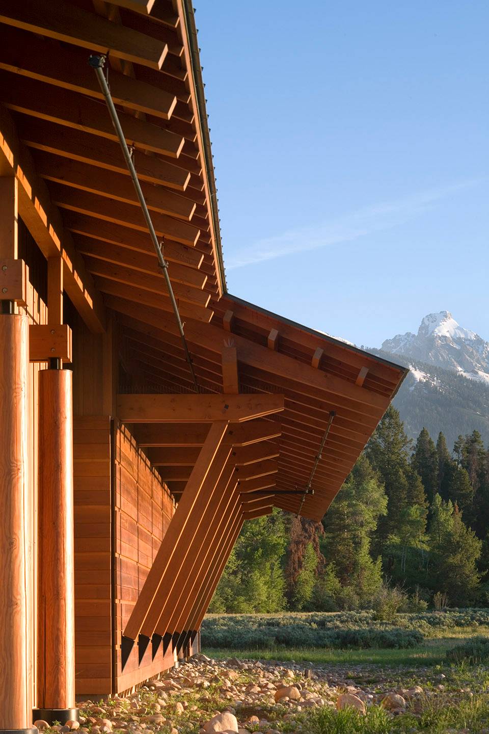 勞倫斯·洛克菲勒自然保護區(qū)既表達了對大自然的敬畏之情,也體現(xiàn)了人們對自然遺產(chǎn)的珍愛與保護。這一開創(chuàng)性的項目是從勞倫斯·洛克菲勒時代開始的,在過去的75年間,這個家族對其下所有的1100英畝土地的修繕與維護成為當(dāng)?shù)鼐用褡钫湎〉酿佡?。洛克菲勒的最初?gòu)想是將35戶居民移出菲爾普斯湖沿岸,打造全新的步行網(wǎng)絡(luò),并將湖北側(cè)的保護區(qū)游客中心納入步行網(wǎng)絡(luò)之中。該項目完成后于2007年6月被用于國家公園服務(wù)中心。這一建筑設(shè)計的每一步都深刻考慮到對于自然保護區(qū)的管理,維護和修復(fù)。除了7000平方英尺的服務(wù)中心外,項目還包括停車場,三處帶公共衛(wèi)生間的休息處。與此同時,該項目還一并移除了先前的路徑規(guī)劃及其他附加設(shè)計。在這里,人類用設(shè)計回應(yīng)了對自然的責(zé)任與尊重。該項目獲得了LEED白金評級。