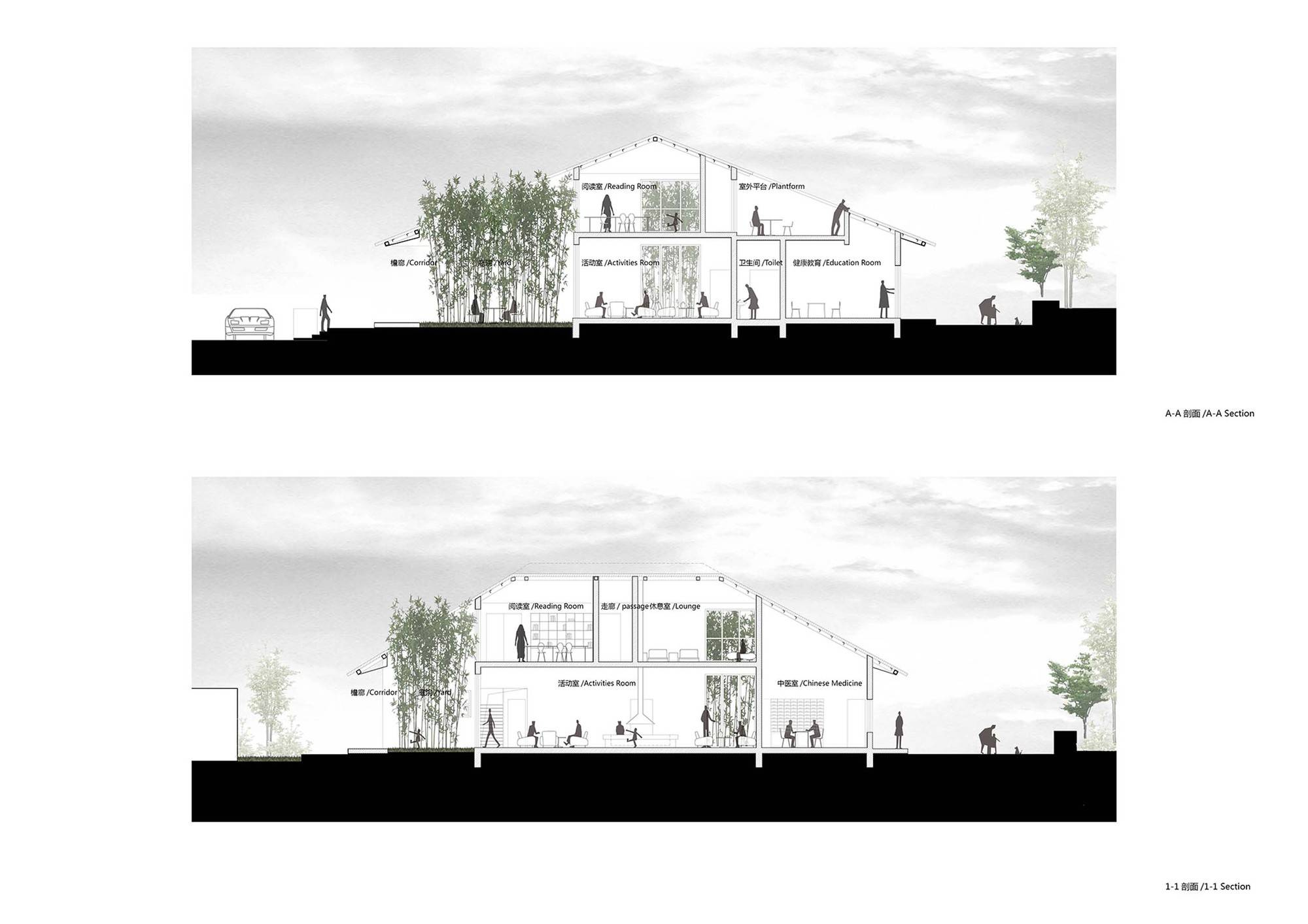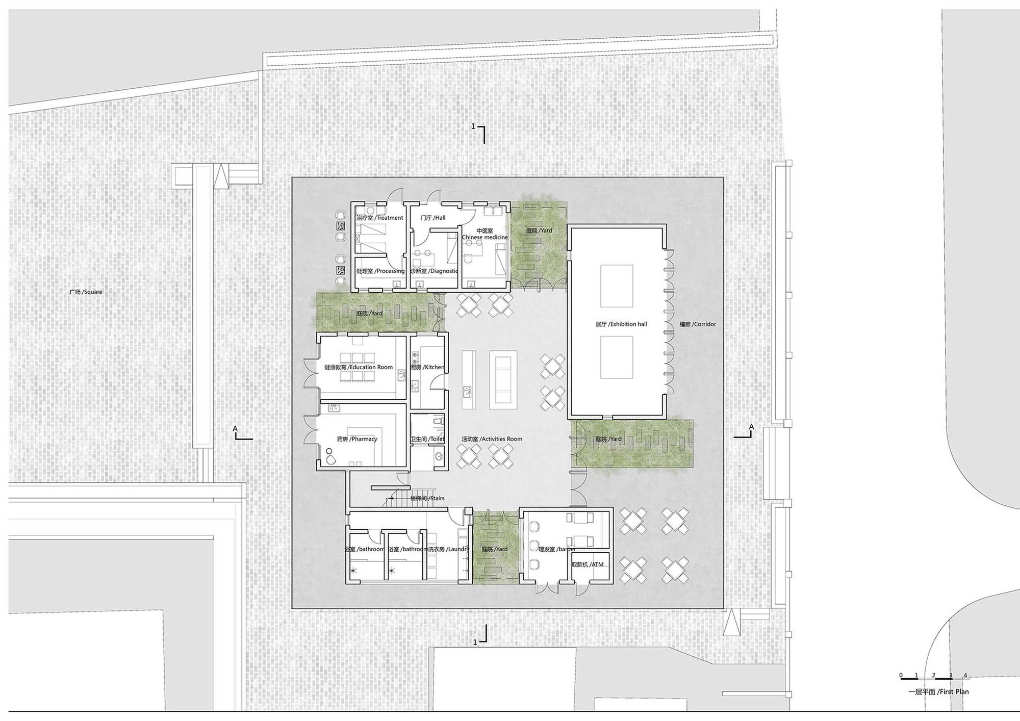 小石村文化大院項(xiàng)目是我們的第一個(gè)建筑實(shí)驗(yàn)。位于小石村的中心,文化大院包含了日間照料中心、鄉(xiāng)村衛(wèi)生站、鄉(xiāng)村夜校、健身房、忠孝文化展廳等多重公共功能,正是一個(gè)可以塑造理想的公共空間模式的開端。