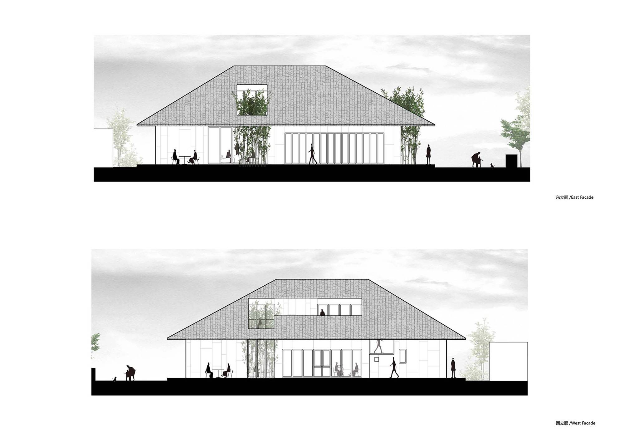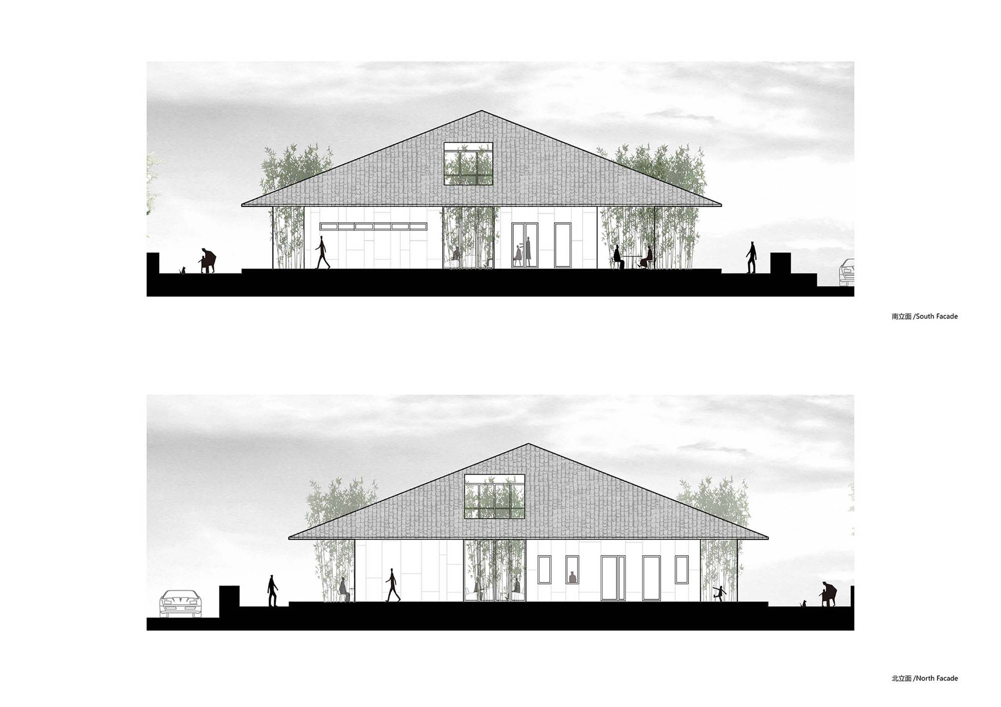 由此引發(fā)了我們最本能的想法:營造一個(gè)“包容一切活動(dòng)的瓦屋頂”,籍此去連接詩性的傳統(tǒng)與互聯(lián)的未來社區(qū)。既營造了“同在屋檐下”的一種身份認(rèn)同,又讓人們走出來、讓行為發(fā)生、從空間層面進(jìn)行軟性的公共治理,從而逐漸孵化出未來的鄉(xiāng)村社區(qū)模型。