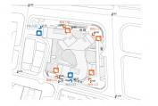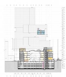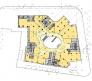商業(yè)裙樓為雙首層設(shè)計,巧妙地將地塊不同方向近3米的高差,在減小施工量的基礎(chǔ)上最大程度轉(zhuǎn)換為商業(yè)價值,將地勢較低處作為低首層主要入口,將商業(yè)價值較大的東北角、東南角作為高首層主入口,創(chuàng)造與太平街、坡子街連接的商業(yè)走廊,并設(shè)立廣場公共空間吸引人流。裙樓中庭面積較大,作為藝術(shù)展覽、演出活動空間,為來往訪客提供一個充滿藝術(shù)人文氛圍的公共活動場所,形成環(huán)形的商場空間,有效引導(dǎo)行人流線和優(yōu)化空間體驗。商業(yè)各層之間有多條豎向交通設(shè)計,提升用戶體驗的同時,最大程度提升了高層商業(yè)空間價值。