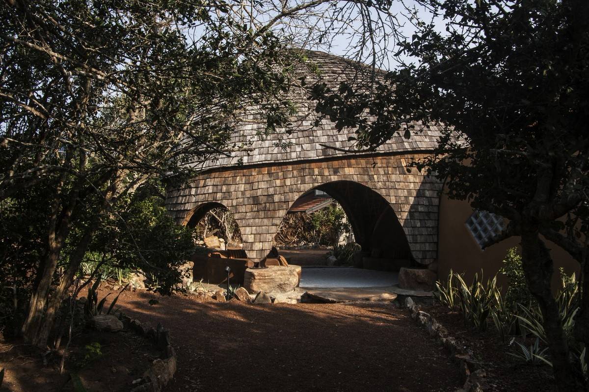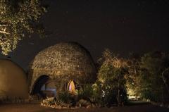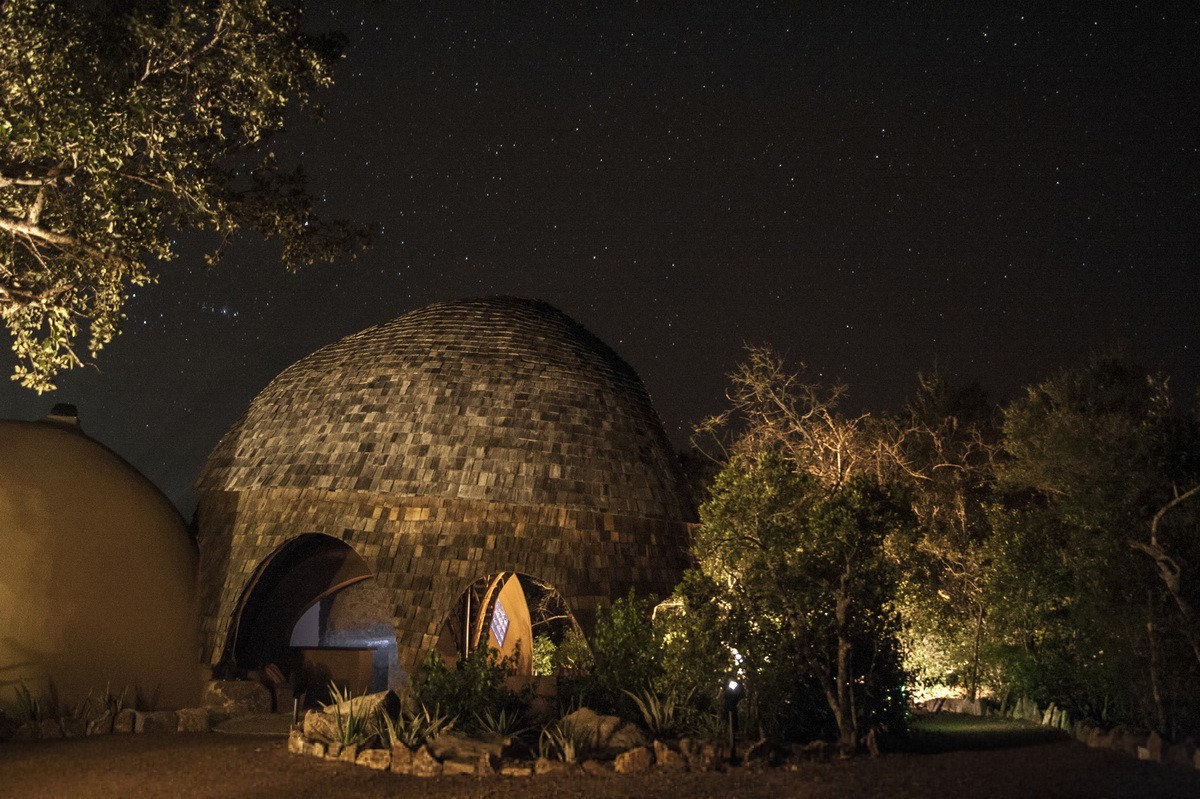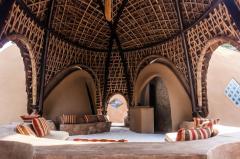 每一個(gè)集群都可以俯瞰一個(gè)像豹爪印一樣,用來吸引野生動(dòng)物的水洞。水療中心從海濱開始。從遠(yuǎn)處看,這些大型建筑似乎非常堅(jiān)固的,但走近仔細(xì)觀察你會(huì)發(fā)現(xiàn)它們是一種編織的網(wǎng)格狀竹結(jié)構(gòu),用回收的柚木做成。巨大的拱形開口和高高的拱形天花板營造出一種強(qiáng)烈的空間感。現(xiàn)存的植被被保留下來,以確保景觀的真實(shí)體驗(yàn),還有由 Adrian Gray 提供的具有吸引力的節(jié)水型尖刺植物和優(yōu)雅的巖石平衡雕塑。