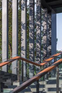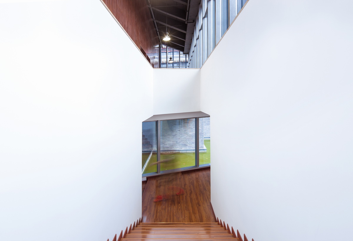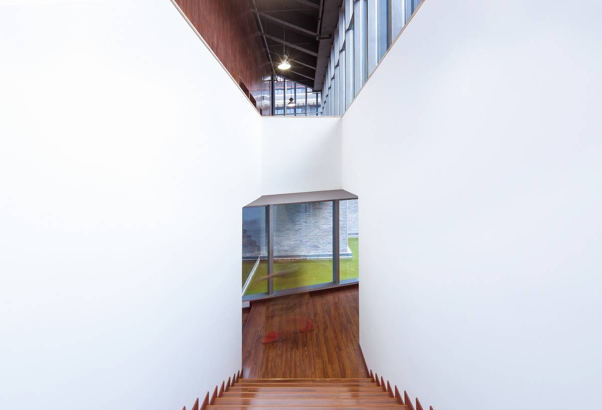 訪客在博物館內(nèi)游覽結(jié)束回到首層門廳后,可經(jīng)由室外游園流線離開博物館。連接博物館與研究中心的天橋,不但實(shí)現(xiàn)了喜馬拉雅研究中心工作人員與展廳之間的便捷聯(lián)系,亦為人們提供了休閑及俯瞰整個(gè)庭院的場(chǎng)所。