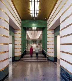 建筑師在對(duì)博物館室內(nèi)空間進(jìn)行更新修繕的時(shí)候,不光考慮了盡可能大地去優(yōu)化每個(gè)空間的功能,還試圖保留并凸顯每個(gè)空間材料的特質(zhì)。除了建筑外部立面的修繕更新外,建筑師主要將時(shí)間花在了原有空間墻面、地面和天花的現(xiàn)代化改造上,以使其所具有的結(jié)構(gòu)更符合法規(guī)要求,并更具合理化。