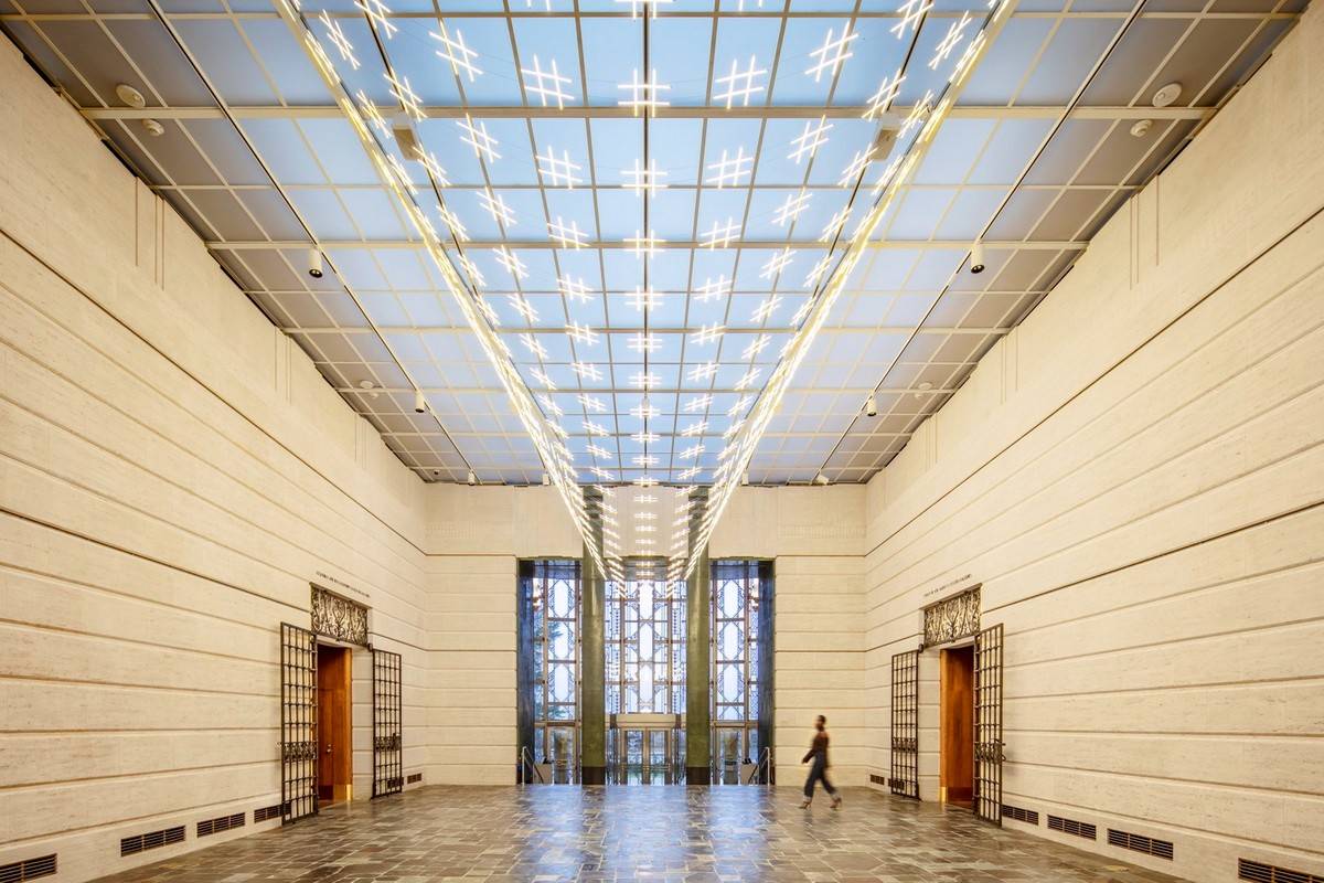 建筑師還在這個(gè)八角形畫廊的天花里置入了全新的燈箱系統(tǒng),通過模擬自然光照的方式,來為博物館提供更具現(xiàn)代性的照明體驗(yàn)。這個(gè)全新的人造燈光系統(tǒng),使得博物館可以為全新的藝術(shù)展品提供展示機(jī)會(huì)、更好地保護(hù)博物館的各類藏品、并在未來的展覽展示中具有更為靈活的策展可能。