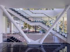 該藝術(shù)博物館原有的裝飾藝術(shù)風(fēng)格大廳位于場(chǎng)地的西側(cè),通過這個(gè)空間,來訪者就可以抵達(dá)博物館的入口大廳,并看到一旁的Fuller庭院和新建的Park中庭。所有的這些中庭空間都被一條新建的流線所串聯(lián),使得該藝術(shù)博物館與其所處的市民公園交相呼應(yīng)。而本次的擴(kuò)建更新項(xiàng)目,在強(qiáng)化Fuller庭院作為博物館中心的同時(shí),還將新建的Park中庭和兩個(gè)平臺(tái)與這個(gè)中心完美地串聯(lián)起來。新建的這個(gè)中庭呈現(xiàn)出整體的垂直空間狀態(tài),并主要由玻璃構(gòu)成,以創(chuàng)造一種漂浮于景觀場(chǎng)地之上的效果。