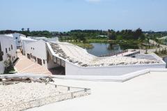 改善自然環(huán)境成為了這個設計中附加的功能。曾經(jīng)陡峭的河岸現(xiàn)在成了物種生存的最佳場所。所有的建筑邊界,屋頂,地板和墻壁的設計與選材,都是為了給鳥類和魚類等物種創(chuàng)造更好的生存空間而設計的。