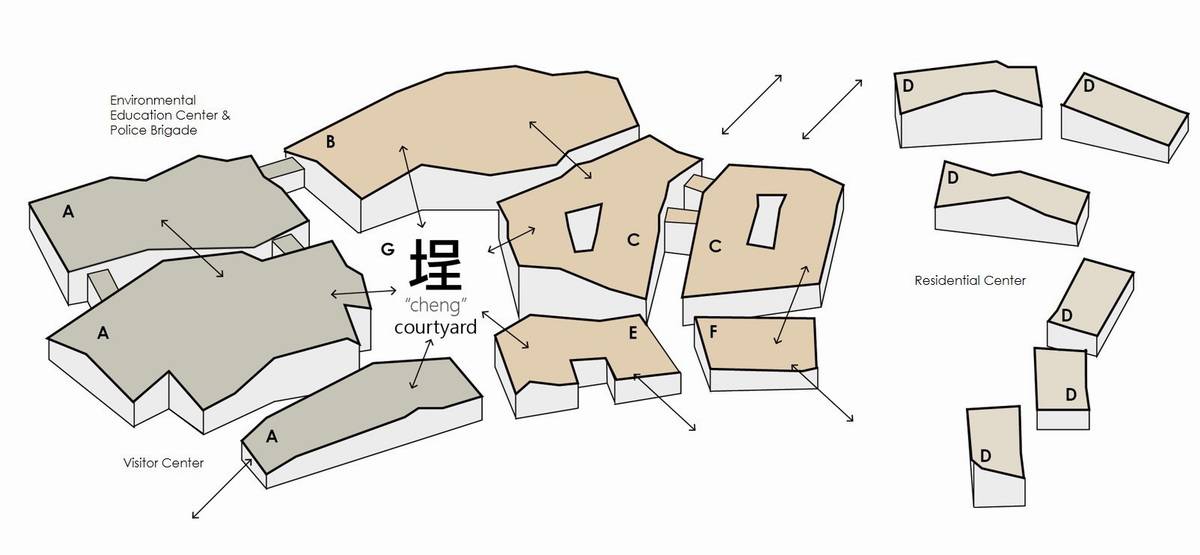 建筑功能的開放性使得公共和私人之間的界限變得模糊。這樣的包容性很像是一個傳統(tǒng)的聚落中體現(xiàn)出的,在那里不同的元素作為一個整體在一起工作。