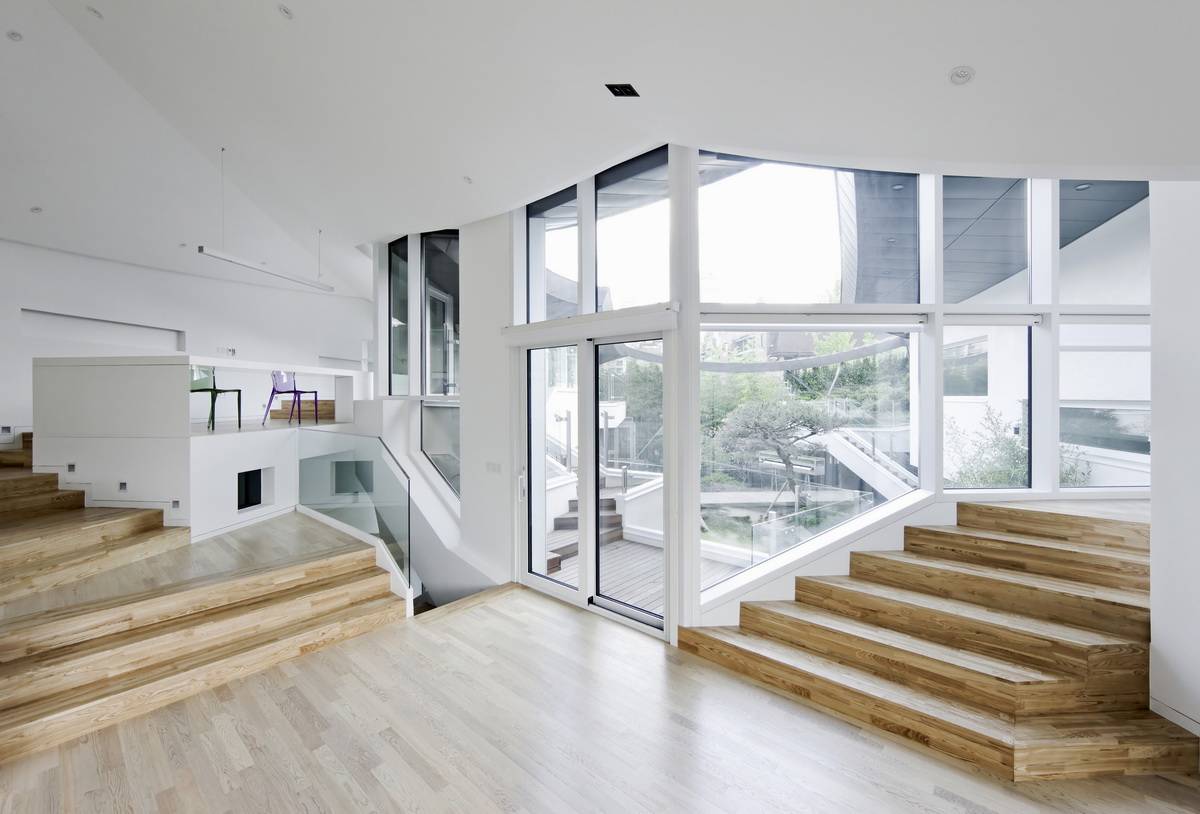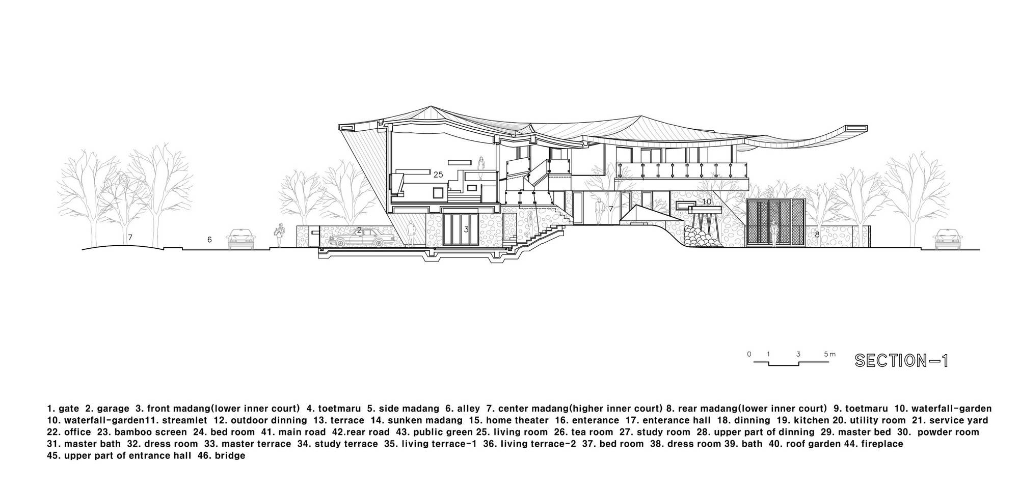通過(guò)對(duì)現(xiàn)有場(chǎng)地地形的適應(yīng),從低Madang到高M(jìn)adang,設(shè)計(jì)師設(shè)計(jì)了多種不同樓層的室內(nèi)空間,并且相互之間形成了一種有趣聯(lián)系。這也是韓國(guó)建筑文化的基本特征。