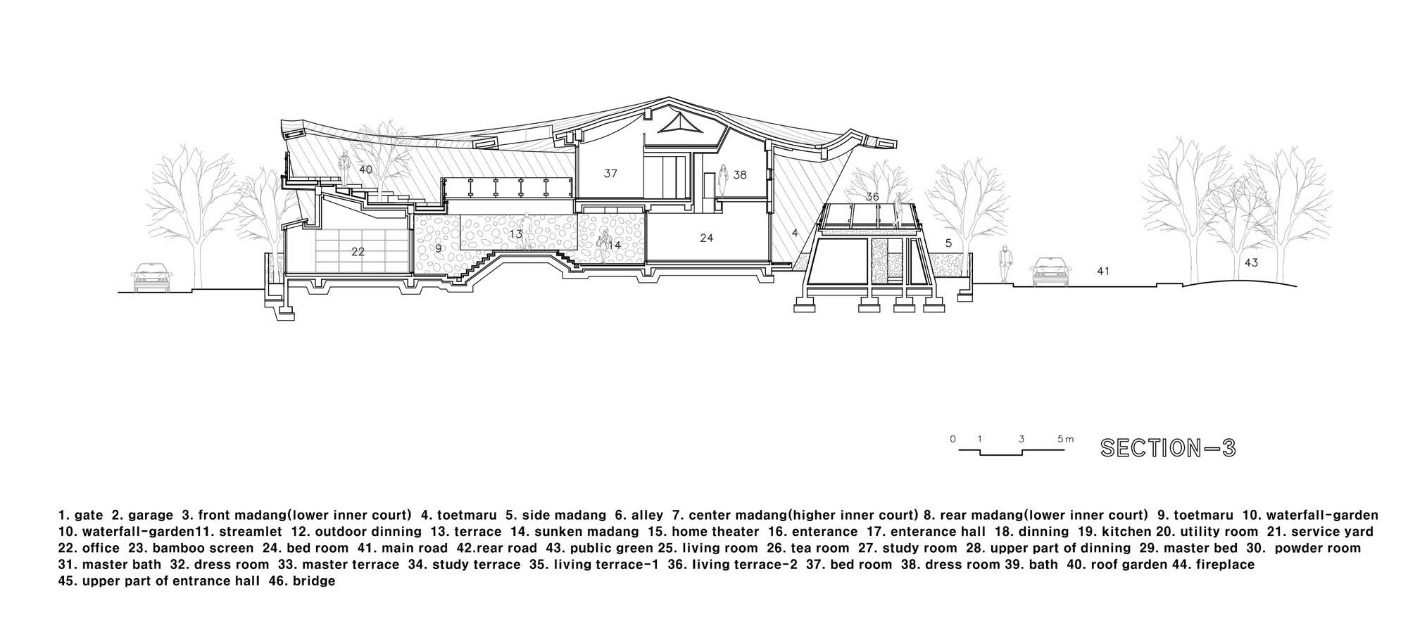 該建筑在設(shè)計(jì)中要求具有韓國(guó)文化的烙印,因?yàn)檫@個(gè)小鎮(zhèn)被認(rèn)為是韓國(guó)住宅中最具代表性的。