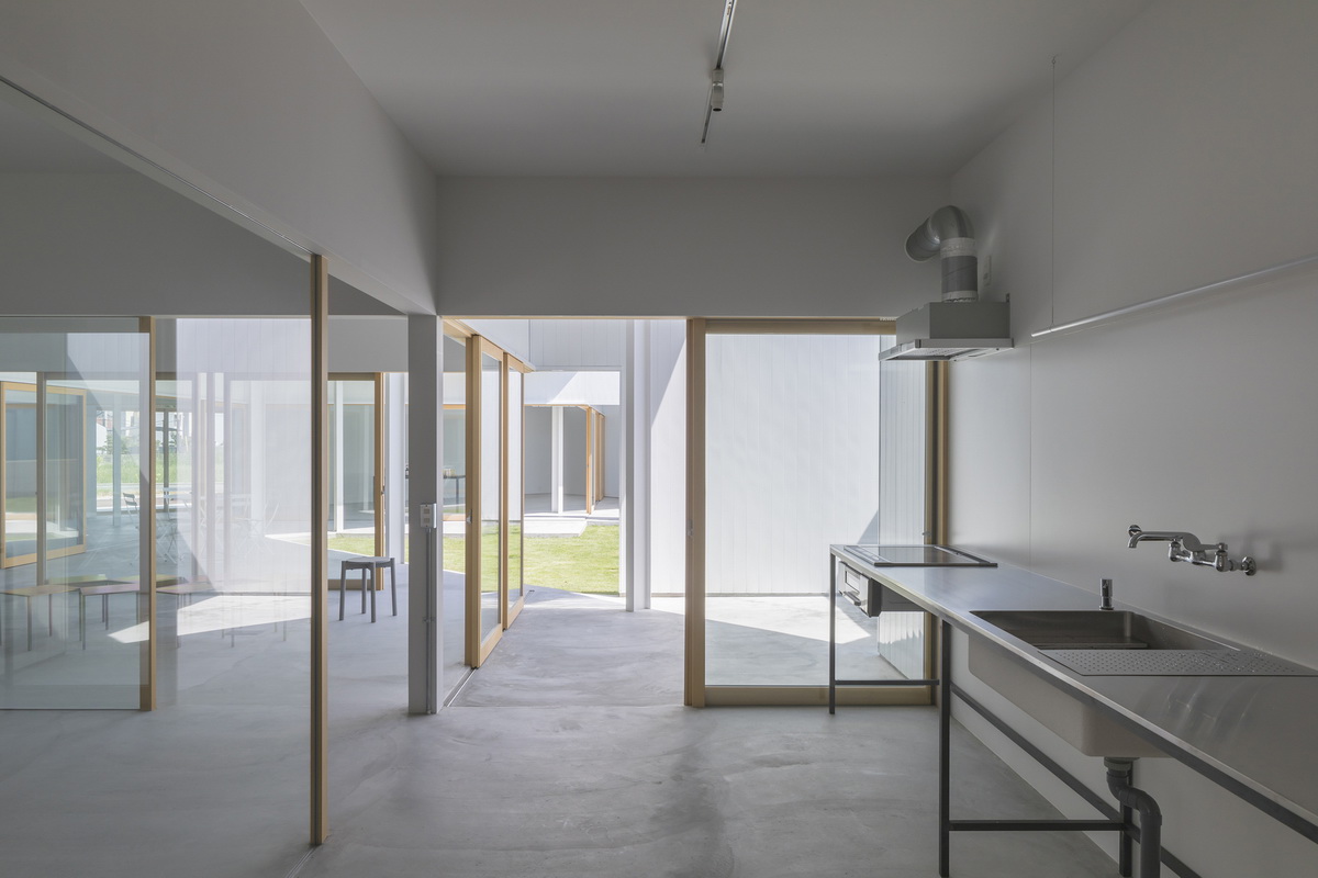 基于該空間所呈現(xiàn)的混合功能用途的狀態(tài),建筑師對空間的開放和私密性進行了一定的把控與設(shè)計。建筑師將啤酒的倉儲和展示店鋪安排在基地的北側(cè),面向街道;并將辦公室和用于展示的生產(chǎn)流水線模型設(shè)置在基地的正中央;而將業(yè)主的私人起居空間設(shè)計在基地的南側(cè)。倘若在空間內(nèi)的任何一個角度往前方看去,不同層級的玻璃門和墻面就會重疊交織在一起,從而營造出一種獨特的空間氛圍感,將空間的硬質(zhì)邊界進行了一定程度上的柔化與模糊。