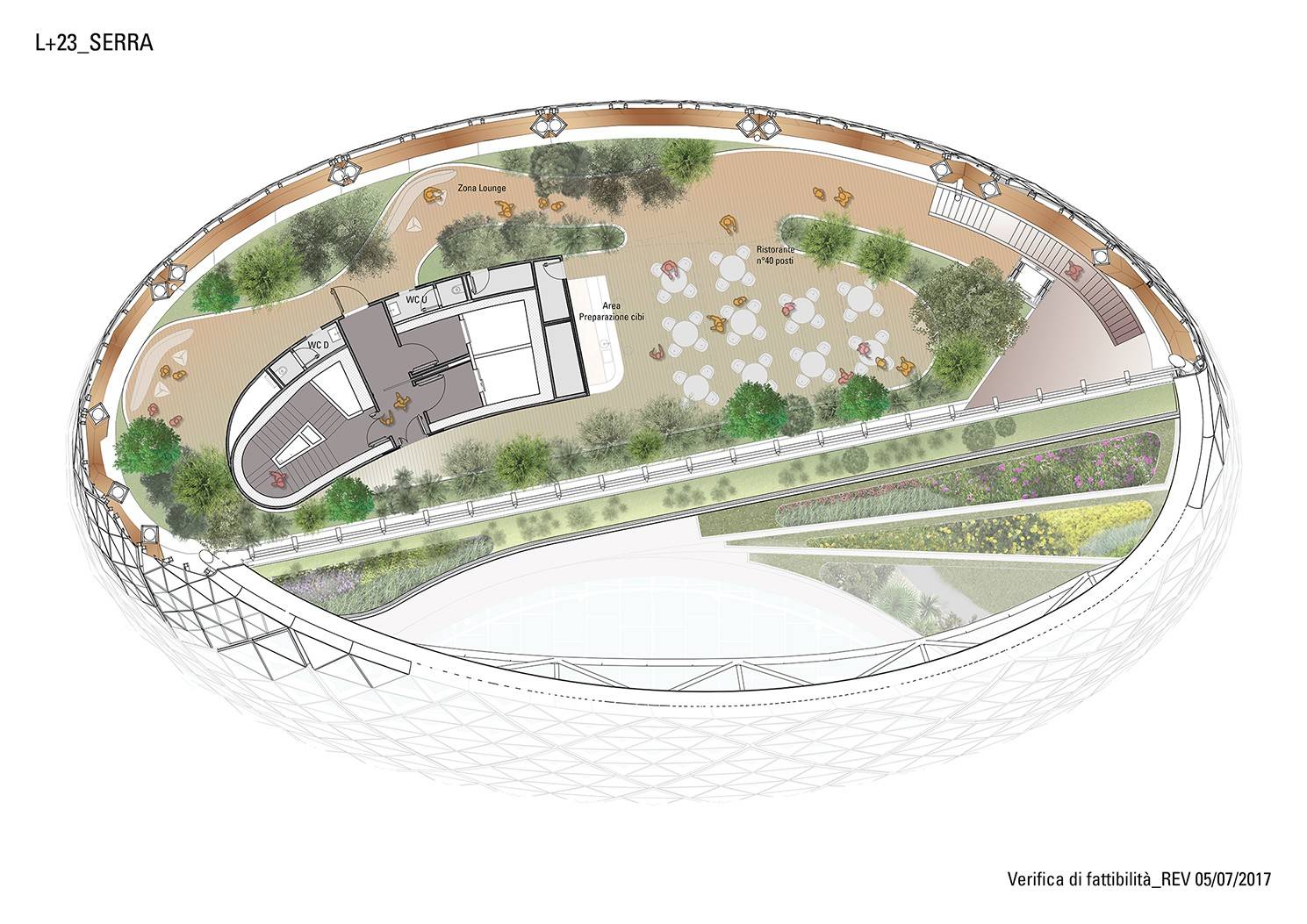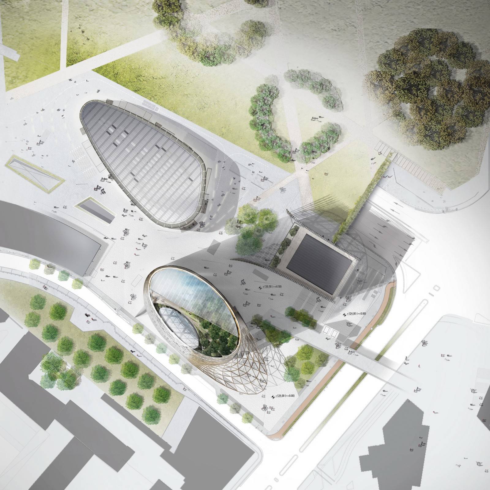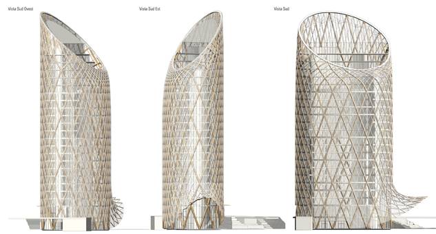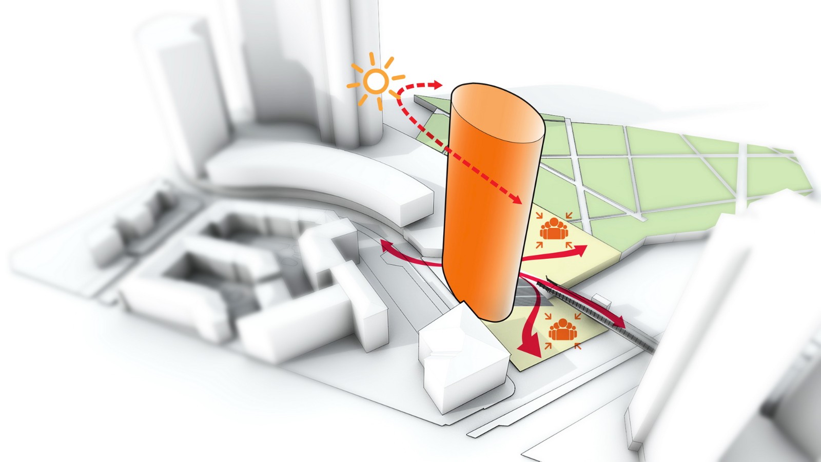 從橢圓形平面圖發(fā)展而成的建筑物外形旨在提高能源效率,顯著減少分散的表面(如果與體積相似但為矩形的建筑物相比),并與周圍的微環(huán)境形成更多的互動(dòng)。