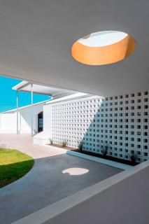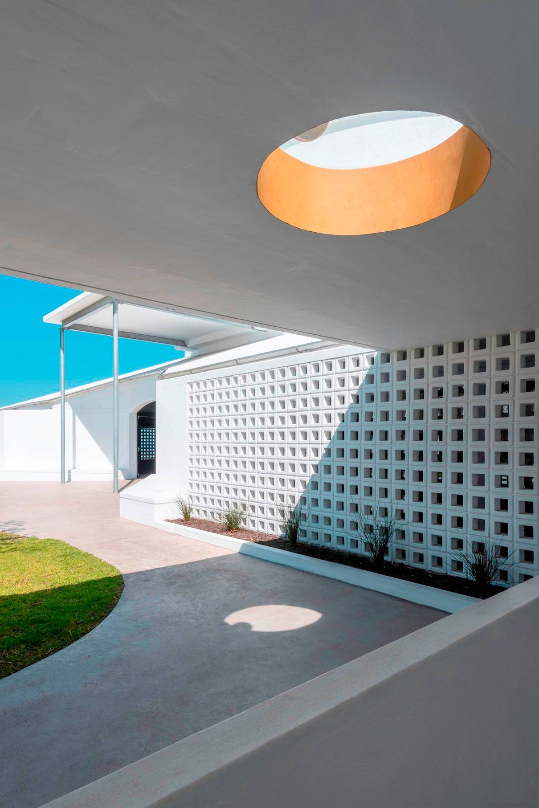 為了與教堂的精神保持一致,我們將教堂的成本控制在最低限度,在過去的15年里,教堂的成本是由教堂成員捐贈(zèng)的。內(nèi)部裝飾采用了精簡的家具和飾面,采用灰木和白鋼框架的椅子,拋光混凝土地板和白色鋼螺旋樓梯,位于教堂后面的聲音控制臺(tái)?;炷溜L(fēng)擋墻建立起公共和私人領(lǐng)域之間的友好邊界,提供交叉通風(fēng)、安全、光線和陽光控制。不同于當(dāng)今流行的封閉式混凝土,渲染的磚塊,鍍鋅鋼和白色油漆混凝土是建筑的首選材料。