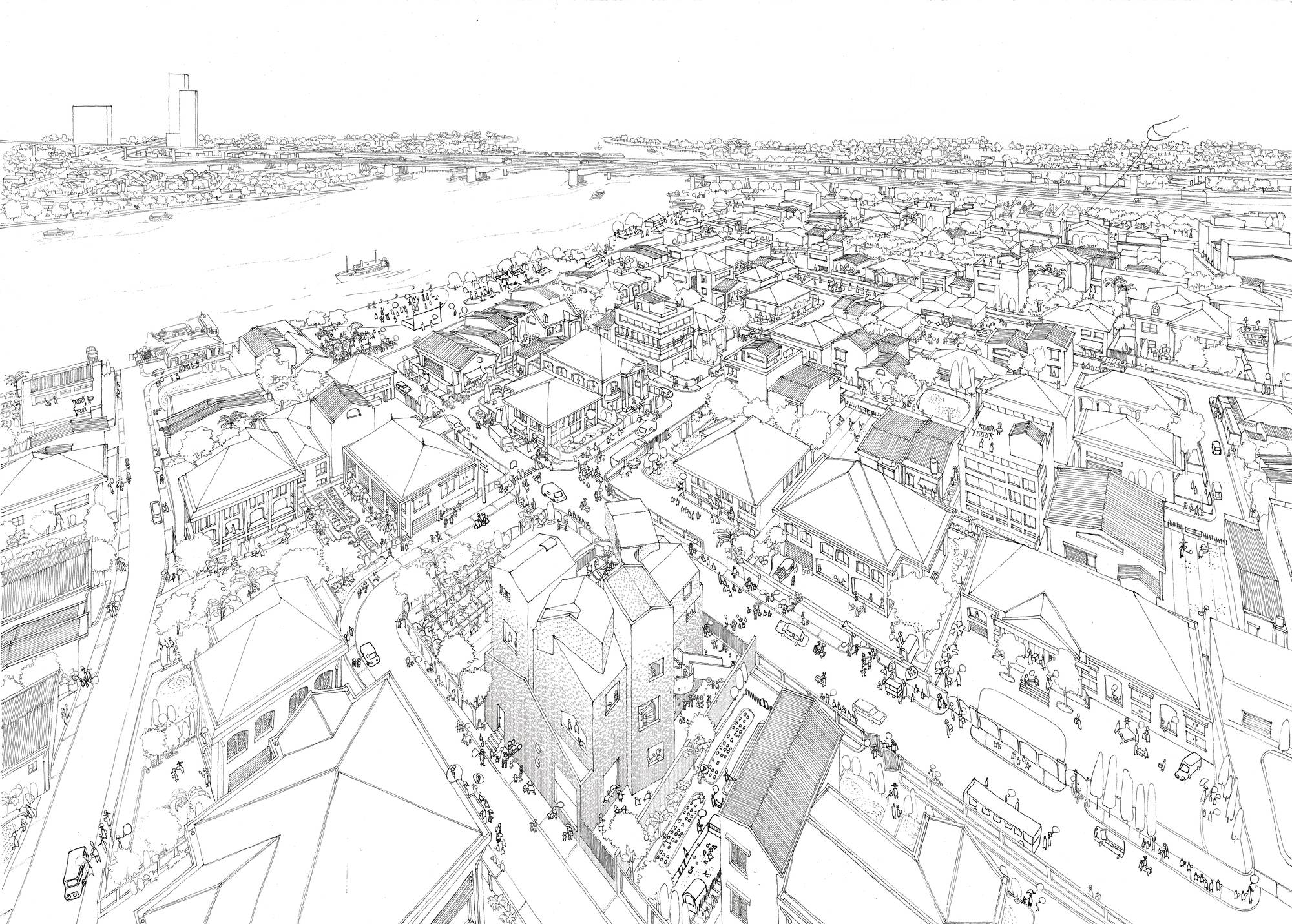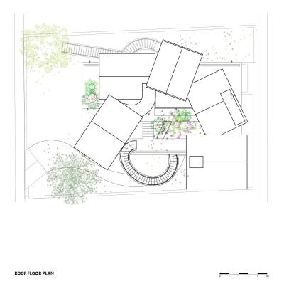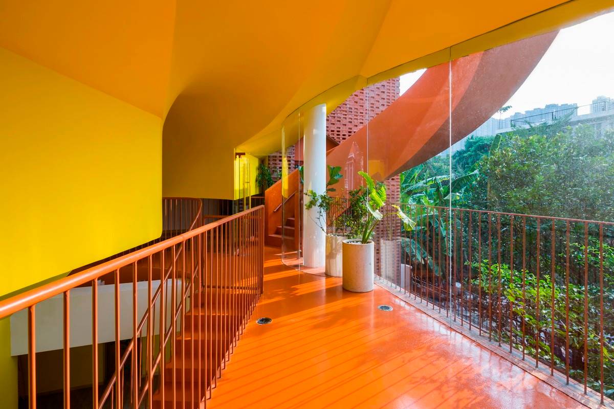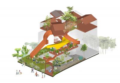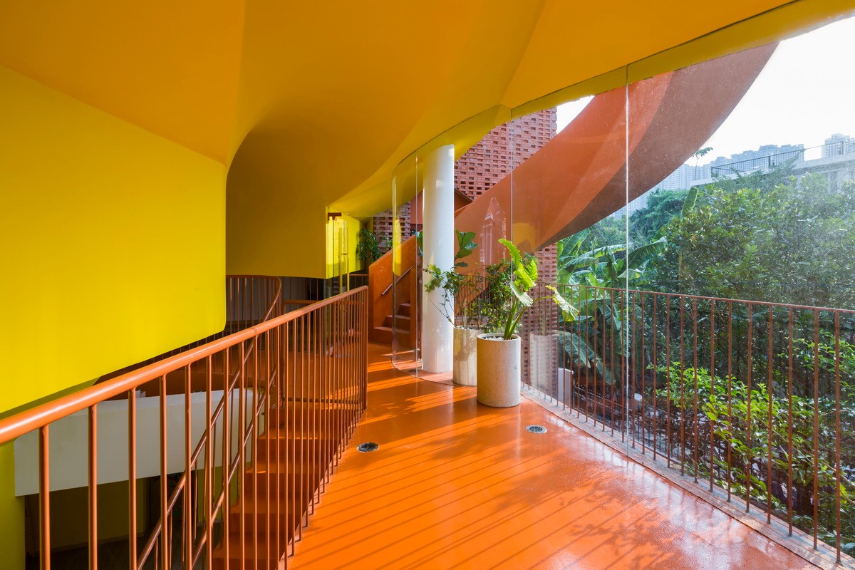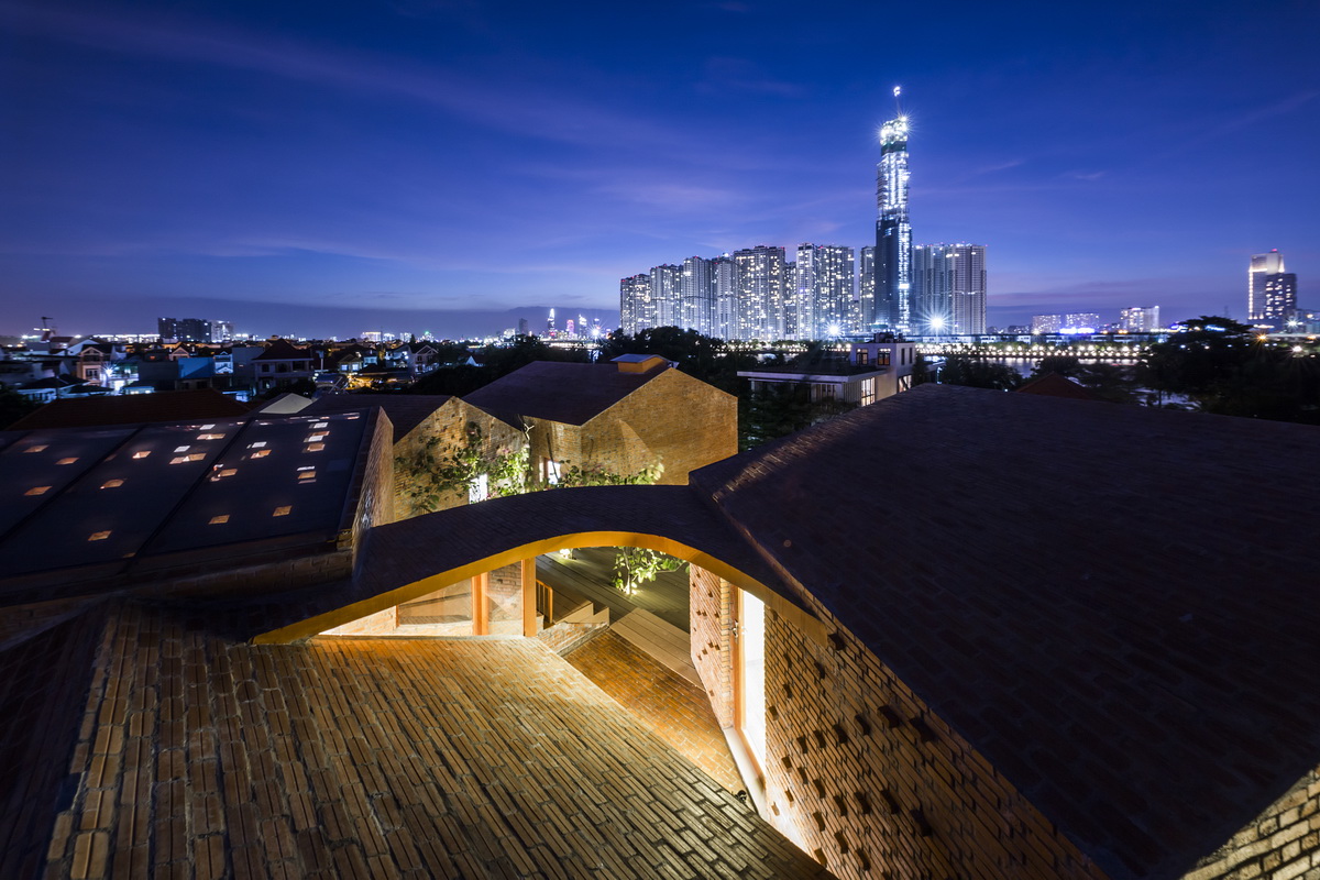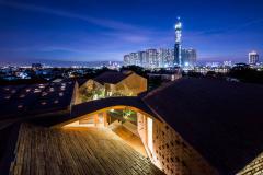 和教室的安靜氛圍相比,這個游樂核心充滿了活力,動感十足。人們可以透過地面上花園形成的空隙看到內(nèi)部或是看到外部。隨著樓層的向上,內(nèi)部空間最終與屋頂?shù)拈_放式花園連接在一起,并能在此體驗探索一回那綿延流長一望無際的西貢河。