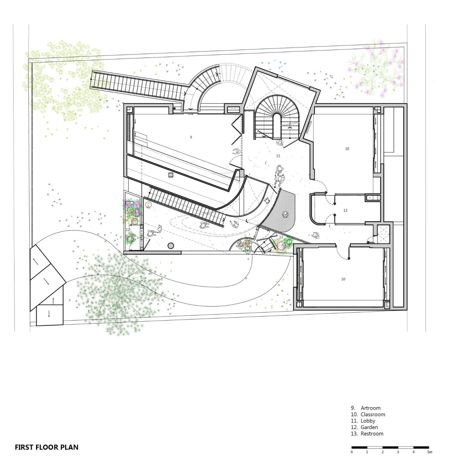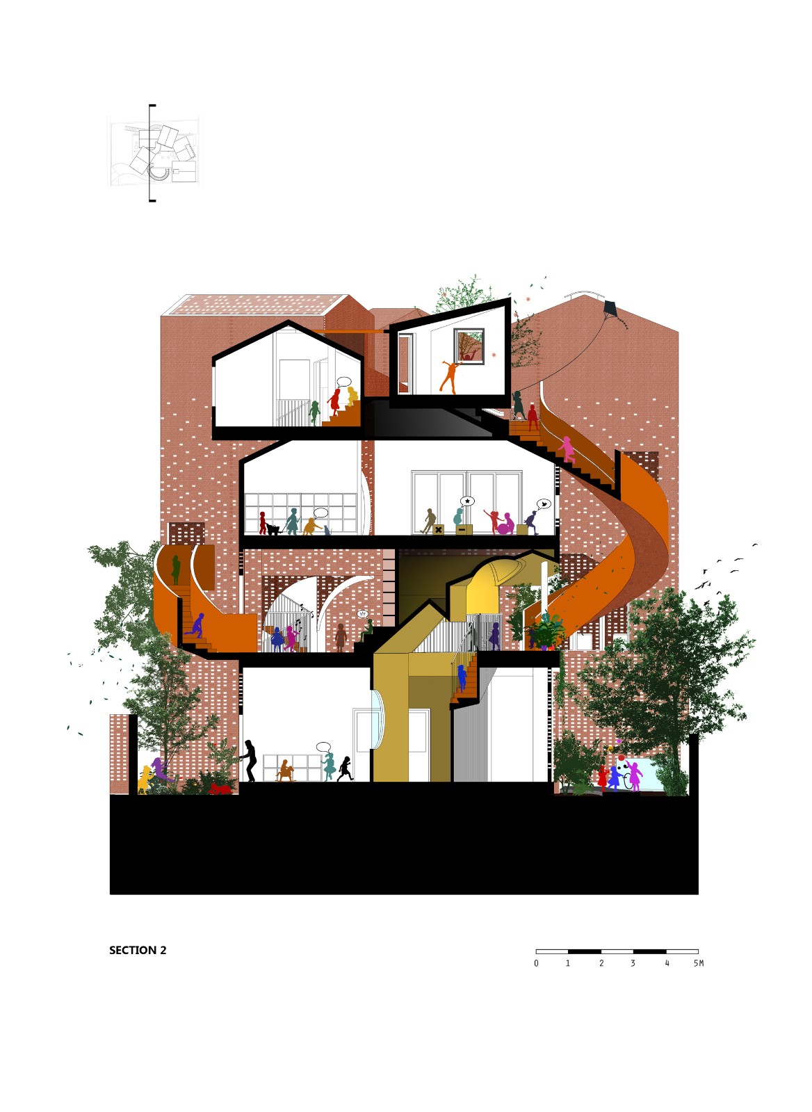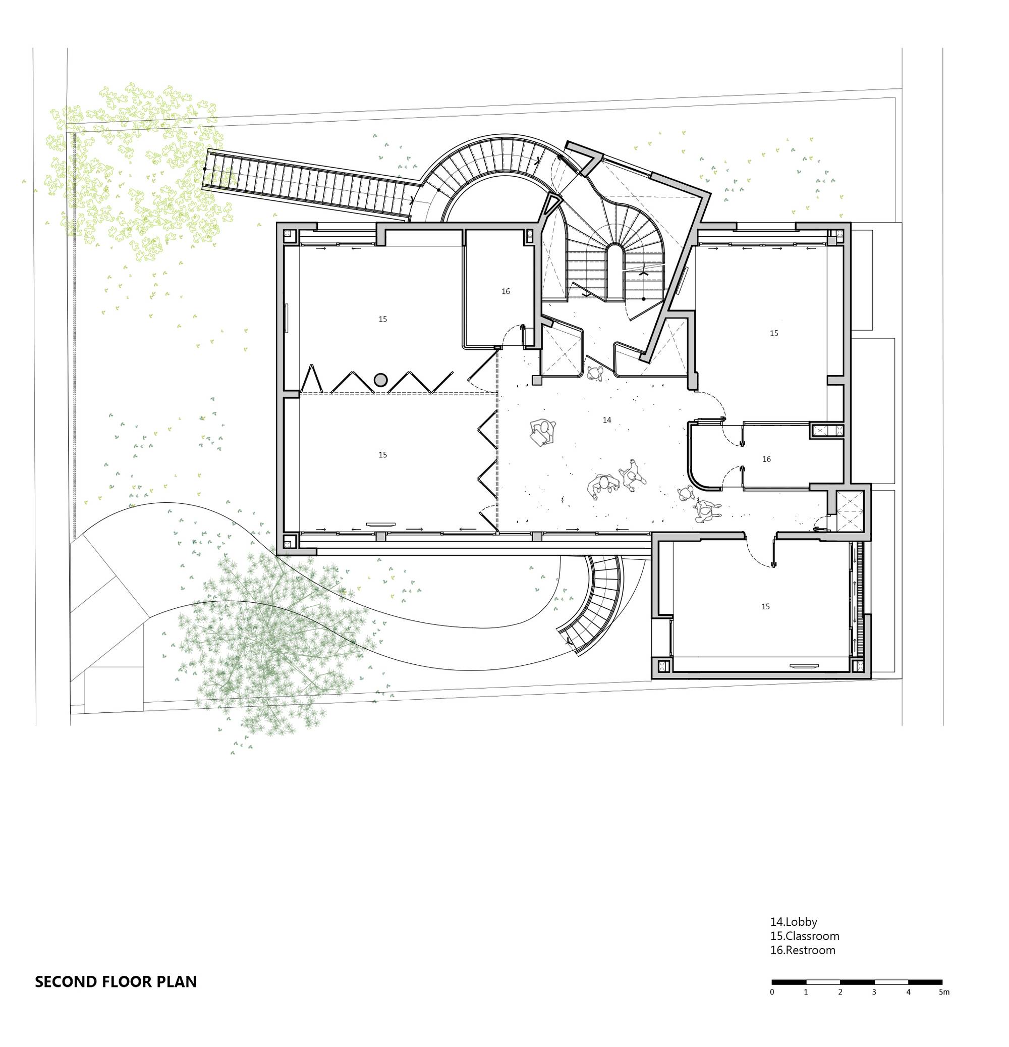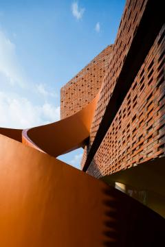 該建筑就像一座大型的樂高建筑,整個墻體采用的是完全裸露的磚砌成,并帶有圖案和開口,這會讓我們的雙眼充滿了好奇感,在展示了獨特的審美價值的同時,還促進了自然通風。里面的教室和公用設施是圍繞著一個游樂核心空間布局的。每一樓層都以交替模式排列,以加強垂直互動,讓孩子們很容易的去接受周圍的環(huán)境,并激發(fā)出他們的內(nèi)在創(chuàng)造力。