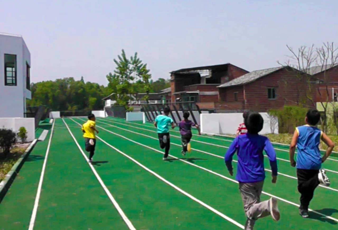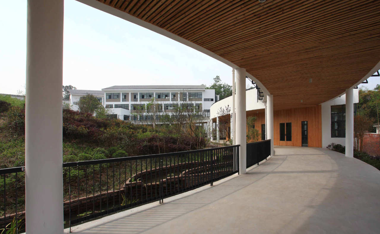 我們的可持續(xù)規(guī)劃的重點(diǎn)是低成本,高影響的保護(hù),再循環(huán)和舒適的戰(zhàn)略,適合梁平的潮濕亞熱帶氣候。梯田地形自然地適合人工濕地;該場地適合處理廢水和雨水,創(chuàng)造了一個(gè)低維護(hù)、封閉的有機(jī)基礎(chǔ)設(shè)施,每天處理4800加侖的水。落在建筑物和軌道上的雨水是在鄰近的濕地池塘中收集的。當(dāng)下雨時(shí),這片濕地會(huì)清理雨水,然后將雨水從幾個(gè)池塘中瀉下,成為一種景觀特征,一直延伸到學(xué)校入口處。此外,雙沖水馬桶有助于調(diào)節(jié)用水。