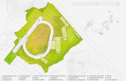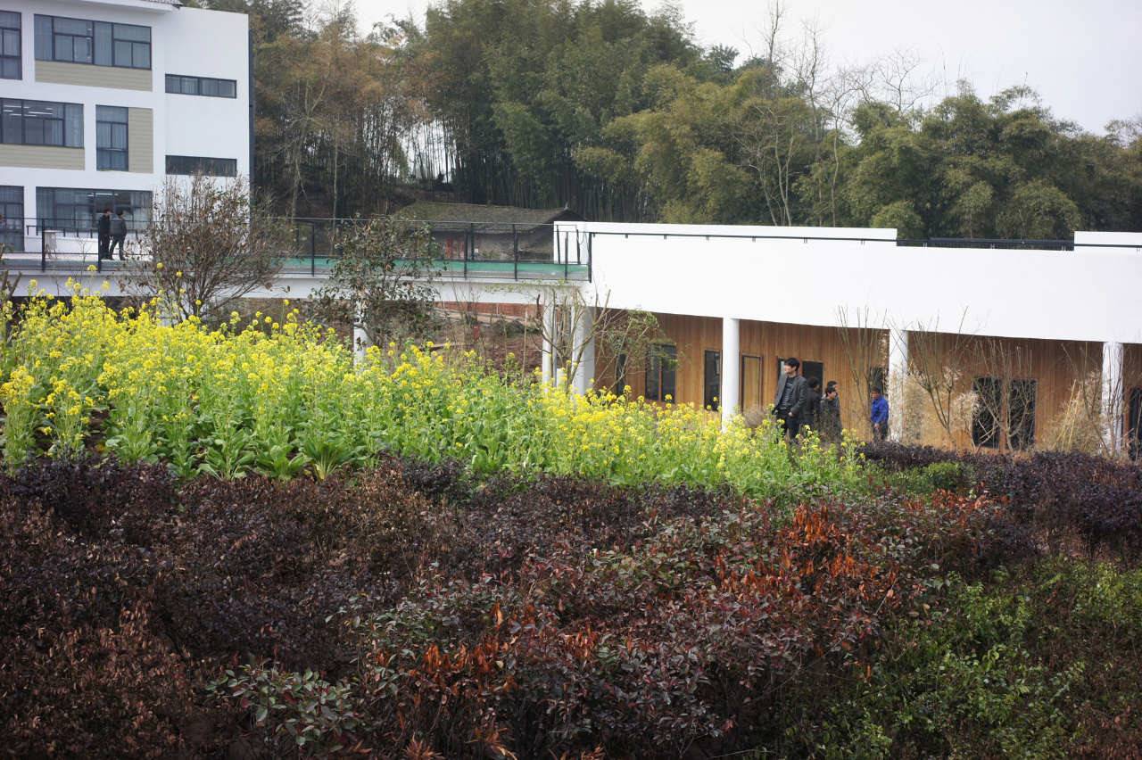 景觀中的農(nóng)田恢復(fù)了活力,包括廚房頂部的作物屋頂,特色是為自助餐廳提供新鮮原料(卷心菜、白菜、玉米、菜籽和韭菜)的特有作物種類,以及戶外農(nóng)耕教室專用區(qū)域。