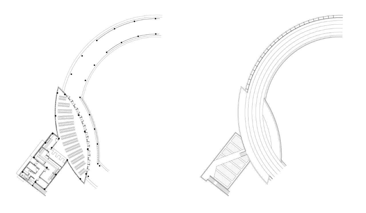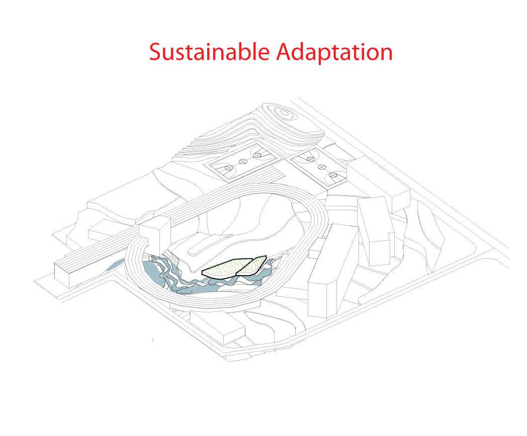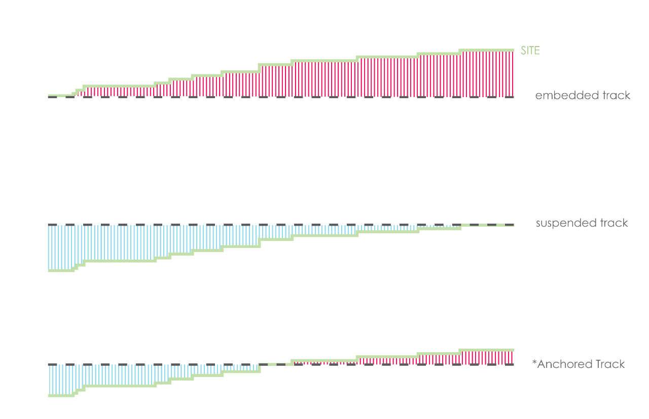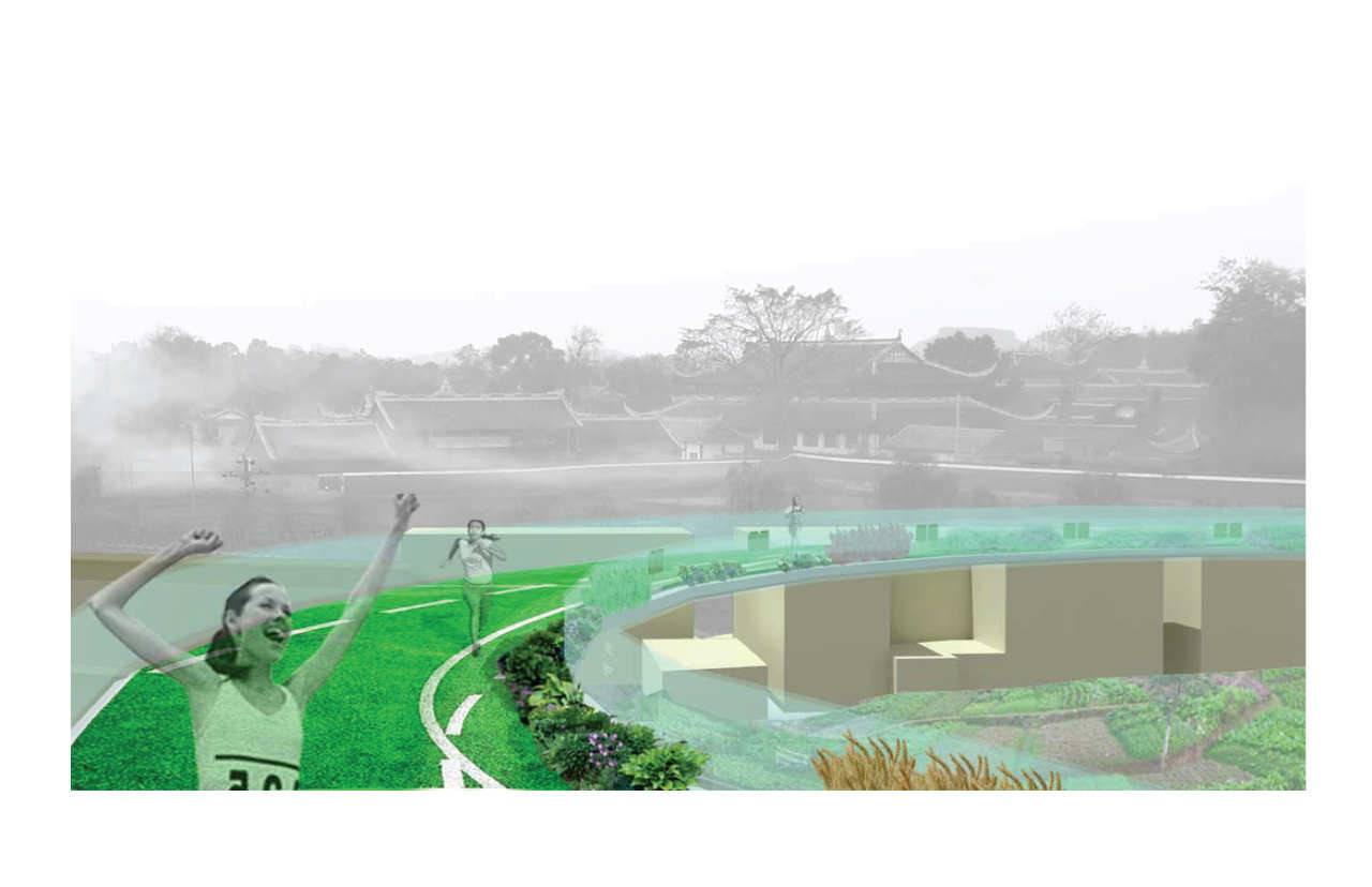 我們確定的主要問題是解決運(yùn)行軌道的編程需求,同時(shí)最小化對(duì)地形緊張的站點(diǎn)的干擾。我們的設(shè)計(jì)解決方案將軌道置于最佳高度,將有效的分級(jí)和最小的支撐結(jié)構(gòu)結(jié)合起來,創(chuàng)建一個(gè)活動(dòng)平臺(tái),從地板過渡到屋頂,并成為場地植物中心3 000平方米的保護(hù)屏障。通過重定向看似相互沖突的元素,對(duì)網(wǎng)站構(gòu)成最大威脅的程序成為了它的監(jiān)護(hù)人。該建筑布局,組織和分配課程圍繞中心,最大限度地發(fā)揮學(xué)生與他們的環(huán)境互動(dòng),同時(shí)在結(jié)構(gòu)上支持軌道。新定義的“天道”是復(fù)合程序的反應(yīng):將跑步道、操場、走廊、觀景臺(tái)和事件舞臺(tái)的功能結(jié)合在一個(gè)幾何學(xué)中,包括場地,并強(qiáng)調(diào)對(duì)寺廟的看法。入口處與一個(gè)公共社區(qū)中心相結(jié)合,作為傳統(tǒng)學(xué)校方案的補(bǔ)充,以促進(jìn)與村民的互動(dòng)。
