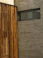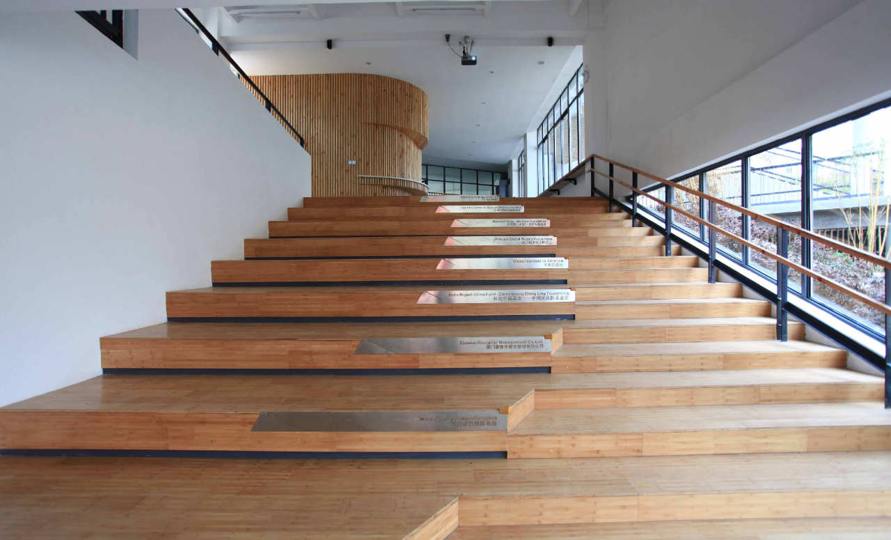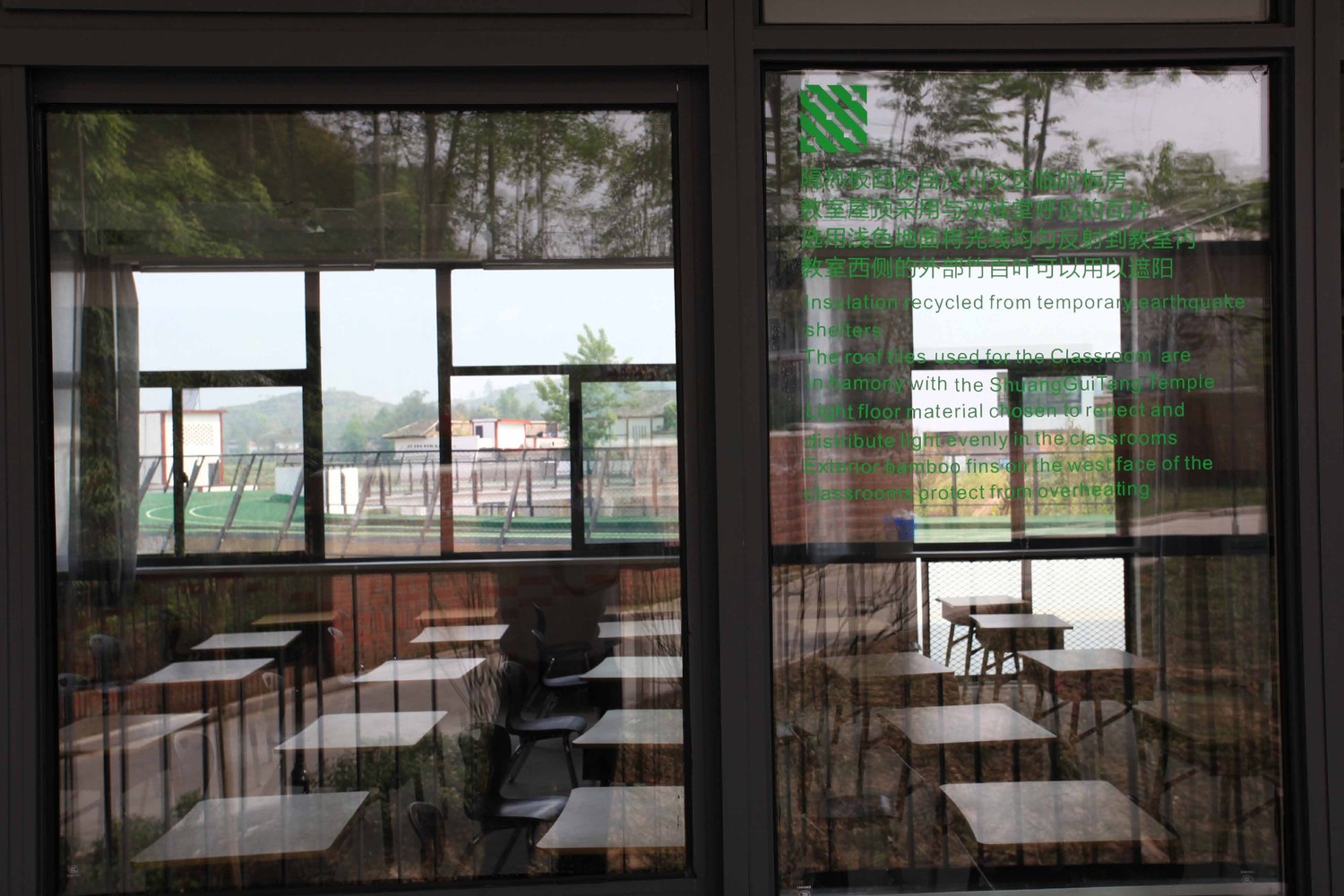 在整個(gè)過程中,使用了一系列回收的、區(qū)域性的和可再生的材料:從北川廢棄的地震掩體中打撈出泡沫保溫板,并將其納入教室墻壁。磚塊和地磚從被拆除的現(xiàn)場建筑被重新使用,以創(chuàng)造景觀池塘。竹子在該地區(qū)生長豐富,廣泛應(yīng)用于教室樓梯外和學(xué)校大門上。社區(qū)中心立面由當(dāng)?shù)厥慕M成。