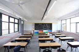 根據(jù)對(duì)當(dāng)?shù)靥柭窂胶惋L(fēng)升的分析,建筑物的最佳方向是捕捉光和盛行風(fēng)。利用Ecotect進(jìn)行了太陽射線研究,以確定教室內(nèi)輕型貨架和天花板的位置。整個(gè)學(xué)校都使用LED照明,以降低用電和成本。