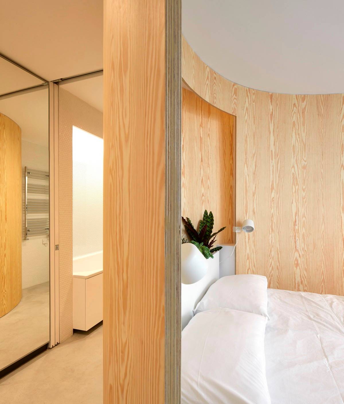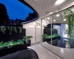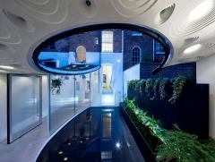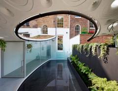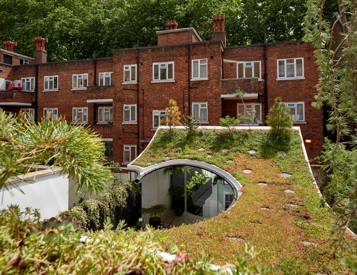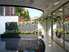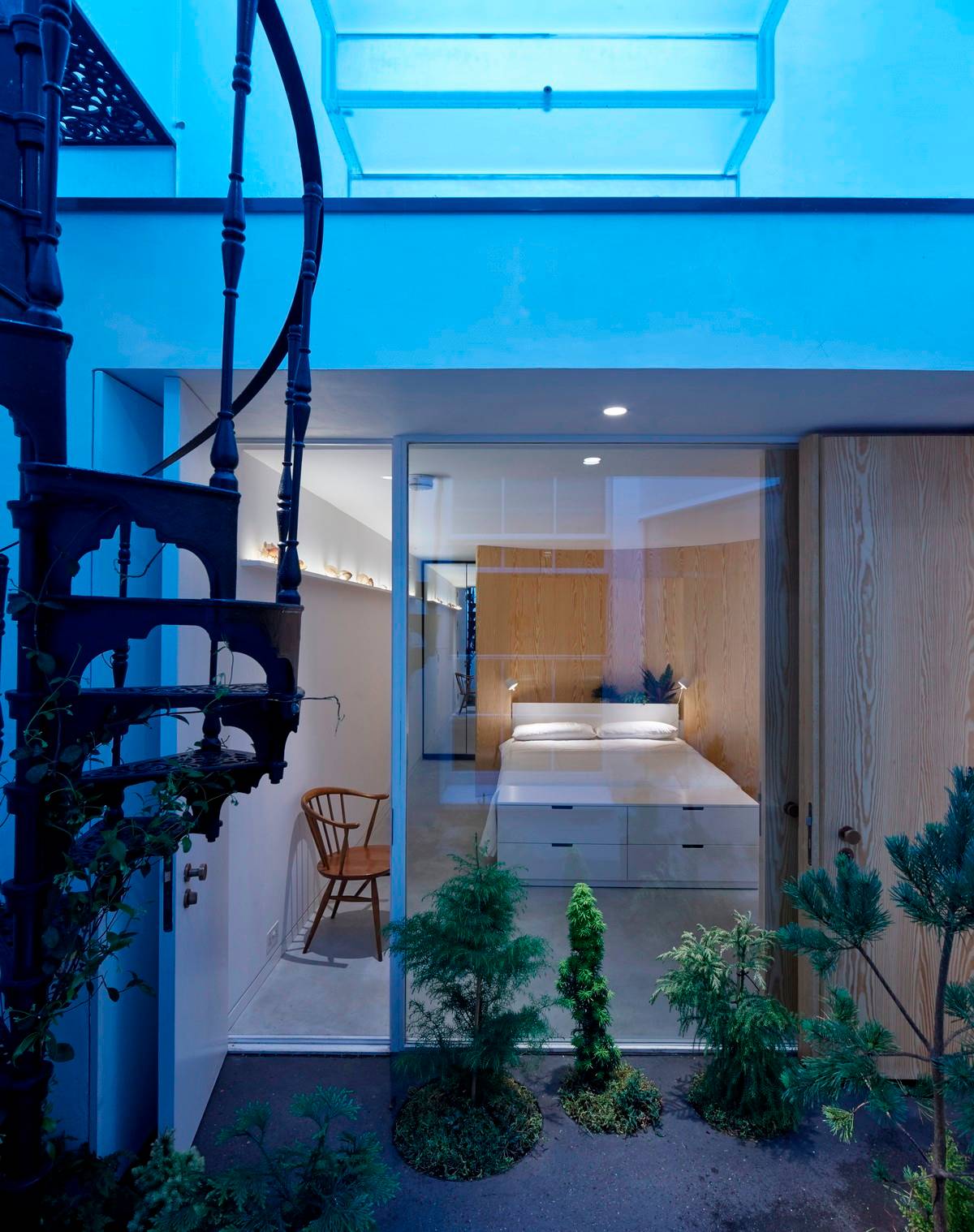 底下是擴張了的地下室,起居洗漱都在這里進行,臥室還正對著一個小小的光井。精心設計的光影變幻,底下的景致同時也是一群標本植物的港灣。在晴雨室里,春意盎然的屋頂、波光粼粼的池水、層層疊加的都市花園都讓人們回歸自然,融入自然,敬畏自然。