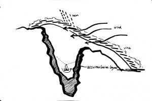 通過近二十年的監(jiān)測可以了解周口店遺址第一地點一直面臨以風(fēng)雨侵蝕為主要病因的一系列嚴(yán)重病害,如風(fēng)化、剝落和失穩(wěn)等。尤其是2012年北京“7.21”特大自然災(zāi)害期間,暴雨過后,洞底及西剖面發(fā)現(xiàn)有雨水迅速積聚后又消失的現(xiàn)象。后經(jīng)物探勘察證明洞底存在大的溶蝕裂隙及破碎帶,嚴(yán)重危害整體穩(wěn)定性。