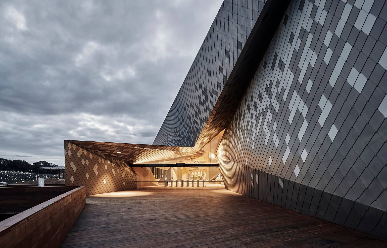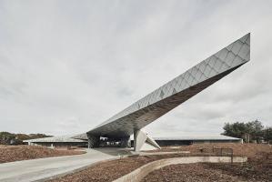 企鵝中心坐落于沙丘、海岬以及濕地三處景觀的交匯處,像一枚別針一樣將這些景觀連接起來,并以各自特定的方式匯集、回應(yīng)彼此——以一種正式而實驗性的方式。三處景觀的力量通過建筑表面的均質(zhì)鋅貼面得到體現(xiàn),貼面在增強(qiáng)抽象性的同時提供了一個常量,三處景觀以此襯托自身。建筑圍繞著三處景觀進(jìn)行空間組織并使景觀可見,激發(fā)對三者的理解與體驗。因此除了頗受歡迎的黃昏企鵝體驗,半島的生態(tài)特征還通過其他方式來驅(qū)動體驗與收入,增長的利潤則貢獻(xiàn)給研究與保護(hù)功能。選址不僅以一種正式的方式探討著景觀間的邊界,同時提供了7公頃新的企鵝棲息地。這個決定——將客戶定位為企鵝種群自身——在帶領(lǐng)訪客到達(dá)、穿過建筑與景觀的過程中也一直保持著,以一種方式最小化對它們的影響,并盡可能減少任何有害的種群重疊。