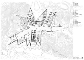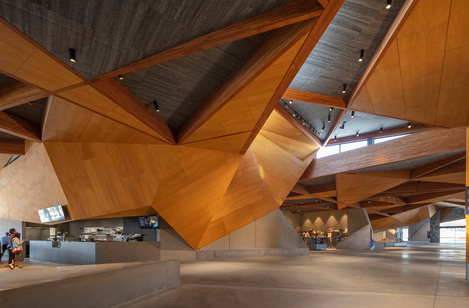 從城市到企鵝世界的旅途中,最重要的是建筑中一條80米的長脊,其組織著三處景觀的最終交匯點,同時根據(jù)是否適合沿途各種功能與景觀,在周圍沿路安排布置建筑內(nèi)容。長脊與功能空間之間,處于功能未定義的“第三空間”的層狀邊緣狀態(tài),由座椅、解釋性元素與門檻組成,同時解決了高流量活動空間的物流壓力,以及在自然棲息地親密接觸小企鵝的問題。新的“企鵝歸巢”游客中心在半島上創(chuàng)造出一種更加復(fù)雜的游客體驗。隨著企鵝種群的鞏固,以及資助一項更加廣泛的野生動物保護(hù)計劃,這塊曾經(jīng)主要作為地產(chǎn)的地區(qū),如今轉(zhuǎn)變成一處主要的野生動物保護(hù)區(qū)。而這也激發(fā)了潛能,擴(kuò)展聚焦生態(tài)與環(huán)境旅游的游客體驗。