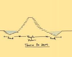 因此,寺廟的生態(tài)策略始于地下水的補(bǔ)給。石灰石采石場(chǎng)中的水漫溢,導(dǎo)致形成低洼的水坑,或被稱為‘kund’:通過修建印度傳統(tǒng)石梯的方式,水岸被聯(lián)想為一個(gè)社交空間;一連串臺(tái)階向下直通水體。從古城 Benaras的石梯中可以看出,這種通過階梯實(shí)現(xiàn)土地與水體對(duì)話的方式,是印度建筑遺產(chǎn)的重要組成部分。