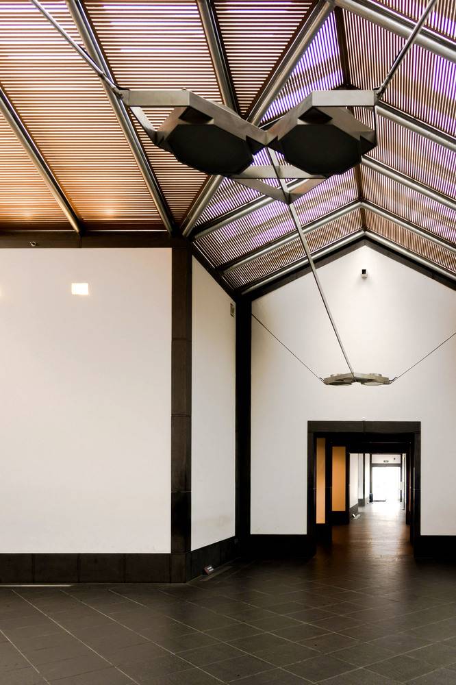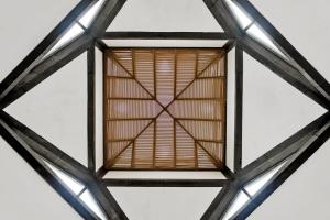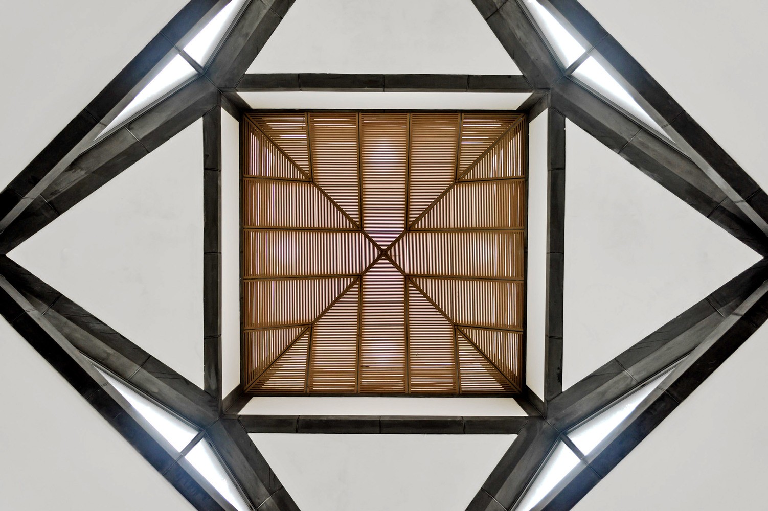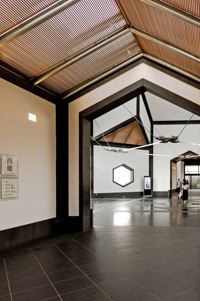 中央大廳的建筑設計包括了一系列動態(tài)的幾何折疊,從八角形開始,由三角形,菱形和矩形在中間過渡調(diào)整,逐漸上升到屋頂?shù)捻敺?,與傳統(tǒng)建筑中折疊的屋頂相呼應,同時引入了充足的空間來使大量的自然光線進入建筑物內(nèi)部。