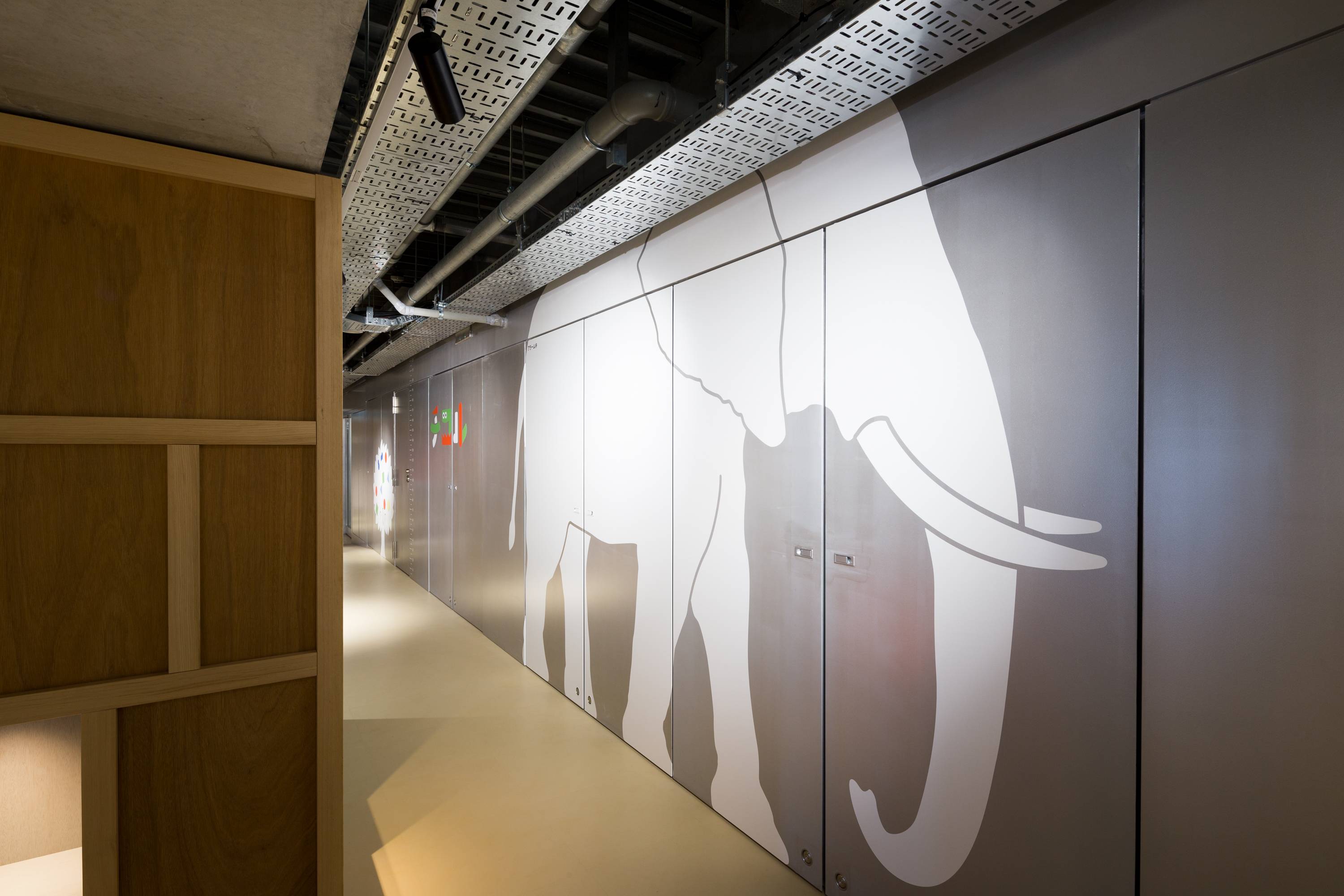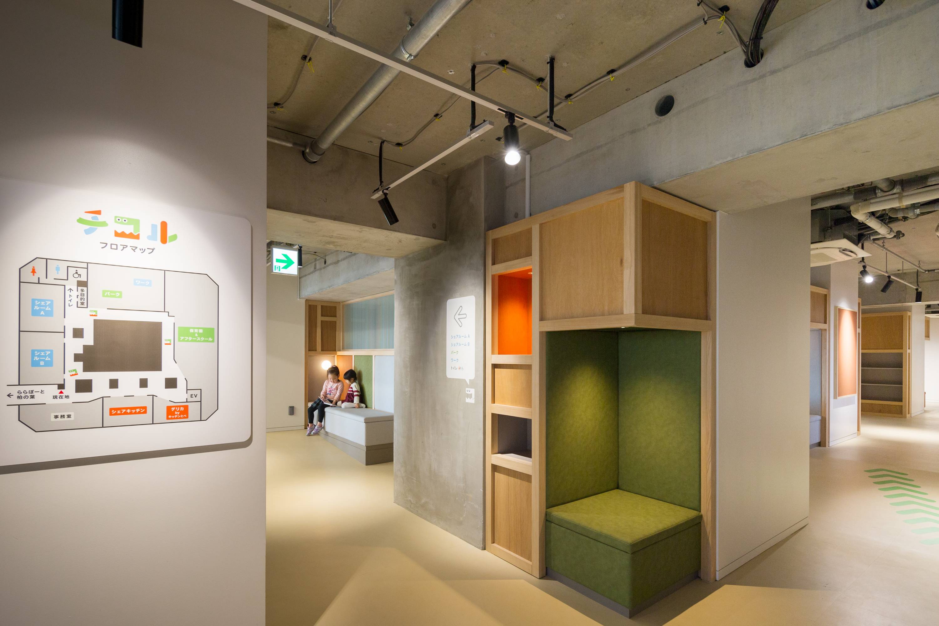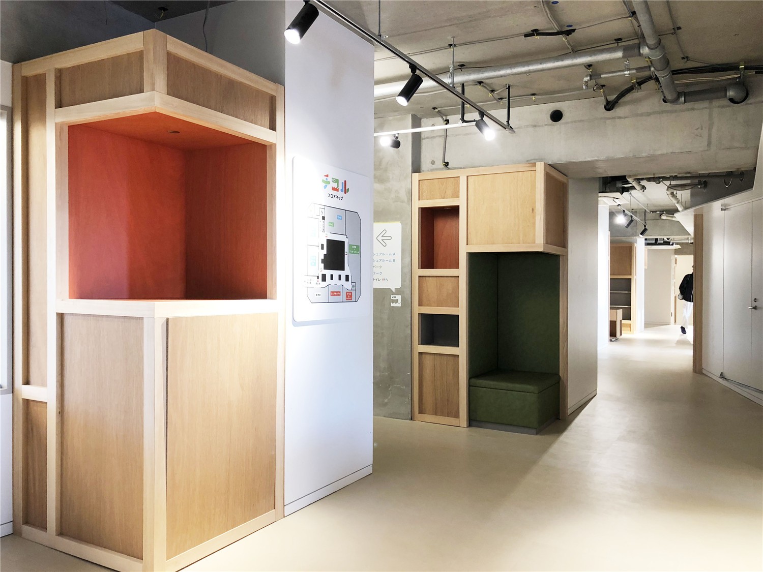 A large centre core volume divides the spaces of the floor plan, with large columns and pipe shafts distributed throughout the plan. The columns are re-considered as an opportunity, and each is designed to create spontaneous, adaptable interaction.