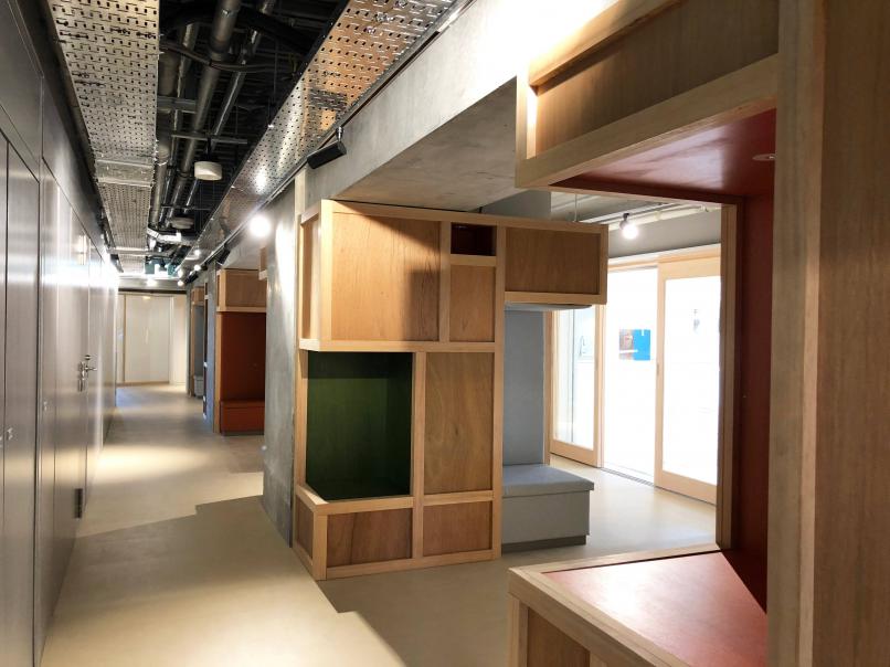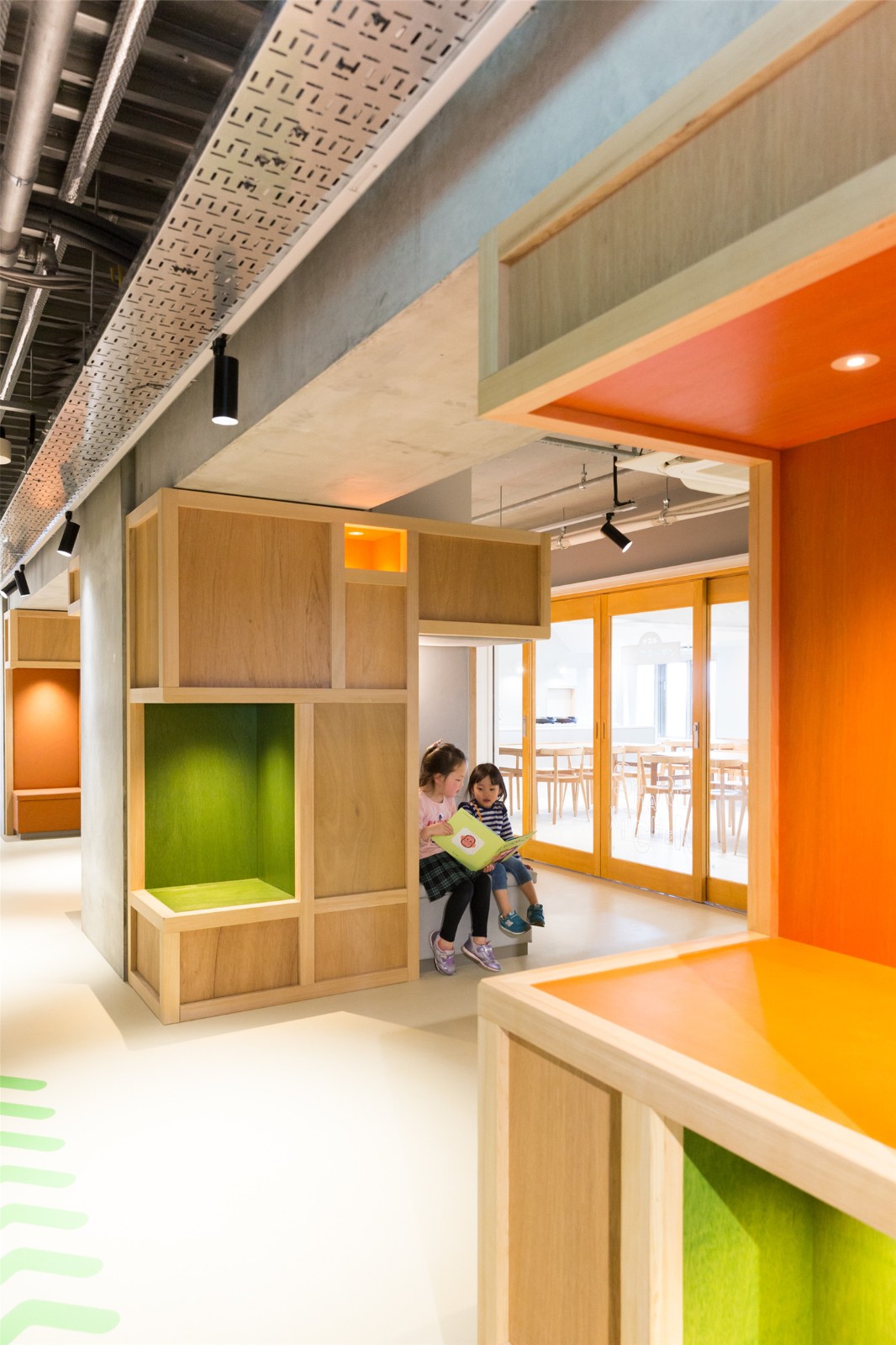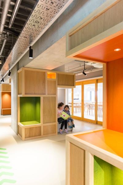 CICOL兒童看護(hù)中心位于東京千葉縣柏之葉站附近的高層公寓一樓,離東京中心區(qū)一小時(shí)車程??醋o(hù)中心深受年輕上班族父母?jìng)兊臍g迎,設(shè)計(jì)師希望能將其打造成連接家庭、兒童看護(hù)、商業(yè)和休閑生活的建筑空間。