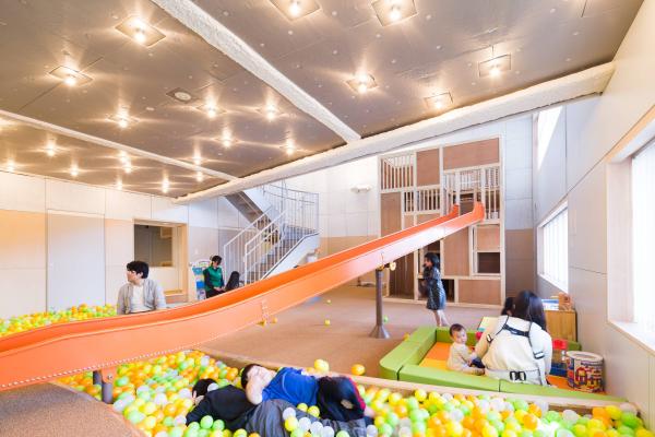 CICOL is a child care facility on the first floor of a high-rise apartment building, located one hour from central Tokyo at the Kashiwano-ha station plaza. The area is popular for young parents who are also working professionals, and the project aims to create an architecture that connects home, child care, business, and recreational life into one space.