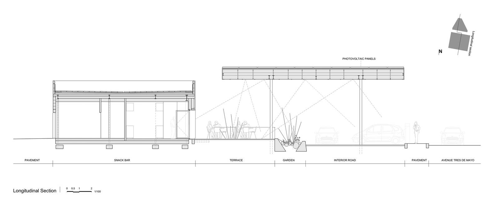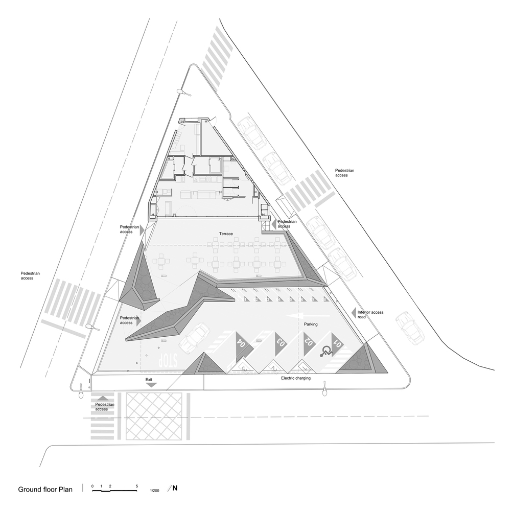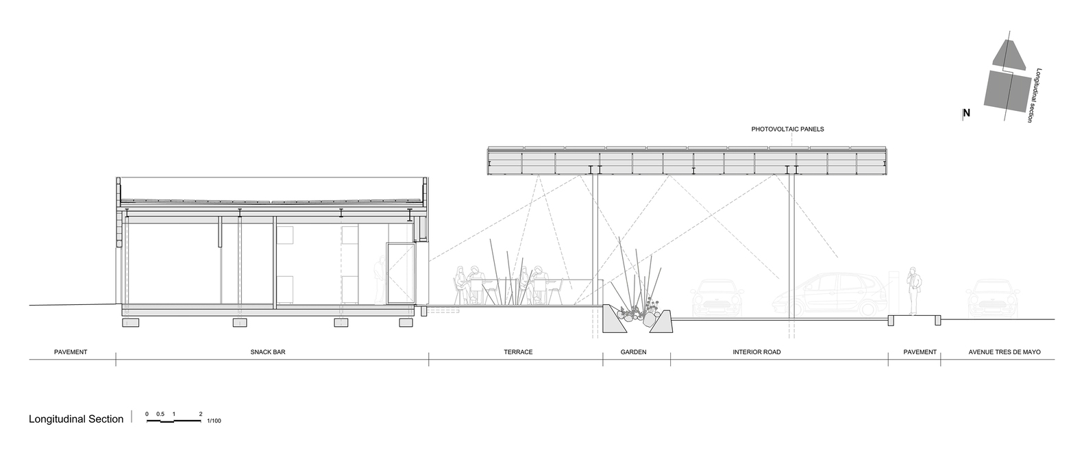 光與影,反射空間和不透明體量之間的對(duì)話是位于加那利群島的第一個(gè)電動(dòng)汽車(chē)(EV)充電站的主要概念。在那里,用戶將隨著時(shí)間變化而獲得不斷變化的體驗(yàn)。它沉迷于光的周期,不僅顯示了一天的流逝,而且隨著季節(jié)而變化,從而顯示了時(shí)間的推移。