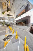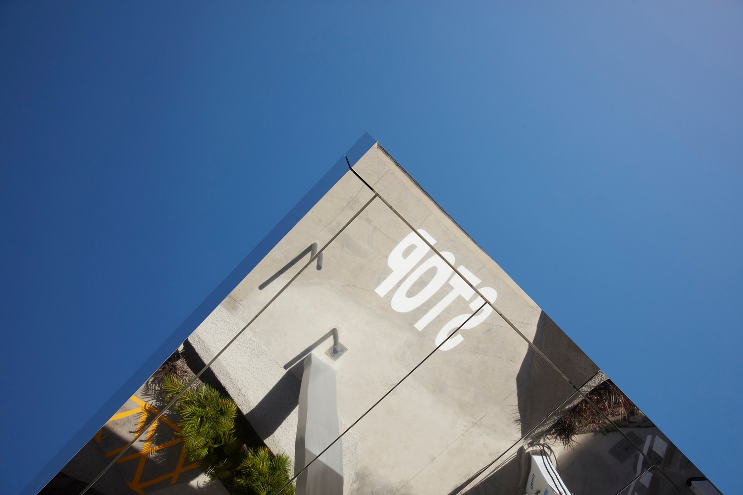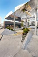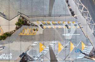 頂棚和已建部件這兩個(gè)單元之間的對(duì)話發(fā)生在地板和將它們隔開(kāi)的空隙中,從而在此產(chǎn)生頂棚朝向建筑物的光入射點(diǎn)。頂棚下面的空間覆蓋著類(lèi)似鏡子的材料,在真實(shí)和虛擬空間之間建立了聯(lián)系。它穿透地面,恰好位于頂棚下方,這一事實(shí)強(qiáng)化了虛擬性的概念,用戶和行人進(jìn)入了這個(gè)虛擬世界。整體感知的特點(diǎn)是,與采用光輸入的頂棚的形式相比,輕便性得到了增強(qiáng),新的覆層材料提供了視覺(jué)上的浮力,花園的傾斜感改變了到您的距離預(yù)判。