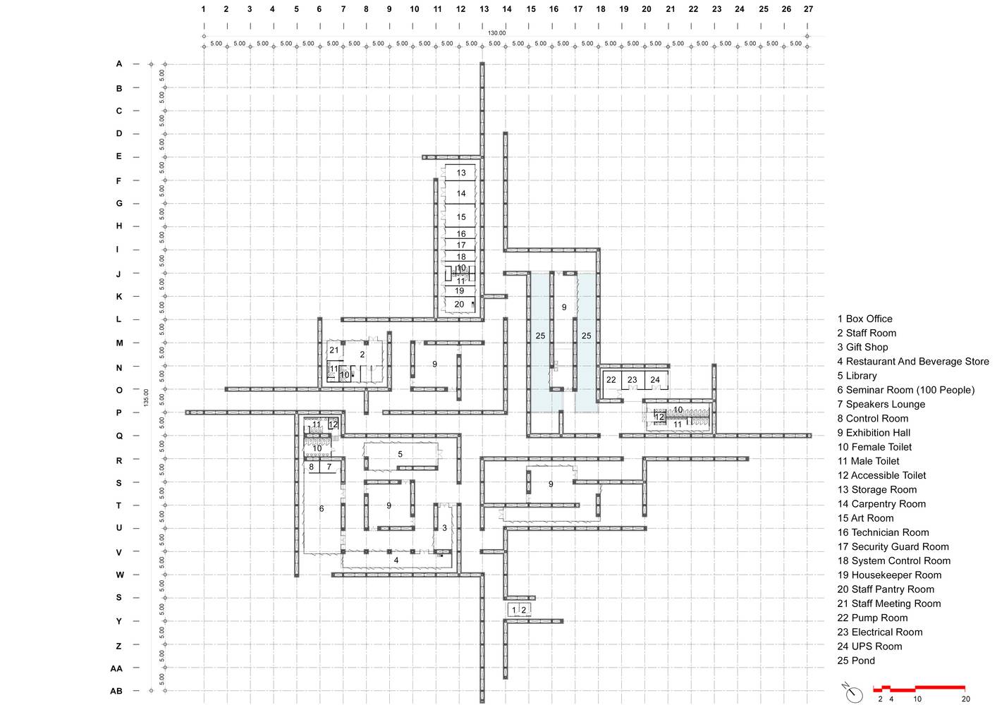 此外,建筑師還對(duì)陽(yáng)光與建筑的關(guān)系,進(jìn)行了特定的考量。建筑師采用忽明忽暗的室內(nèi)環(huán)境設(shè)計(jì),以適應(yīng)一天中不同太陽(yáng)高度的變化。建筑師還確保庭院和外墻也可以用于展覽所需,這樣一來(lái),游客就可以坐在建筑內(nèi)部,向外欣賞特定的場(chǎng)景。