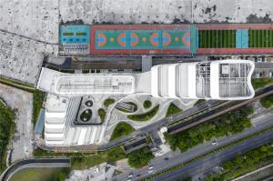 建筑形態(tài)通過橫向線條的連接和秩序美感來達(dá)到視覺愉悅的效果,而在建筑立面采用白色鋁板以及超白玻璃幕墻來展示地鐵列車的速度感和現(xiàn)代感。