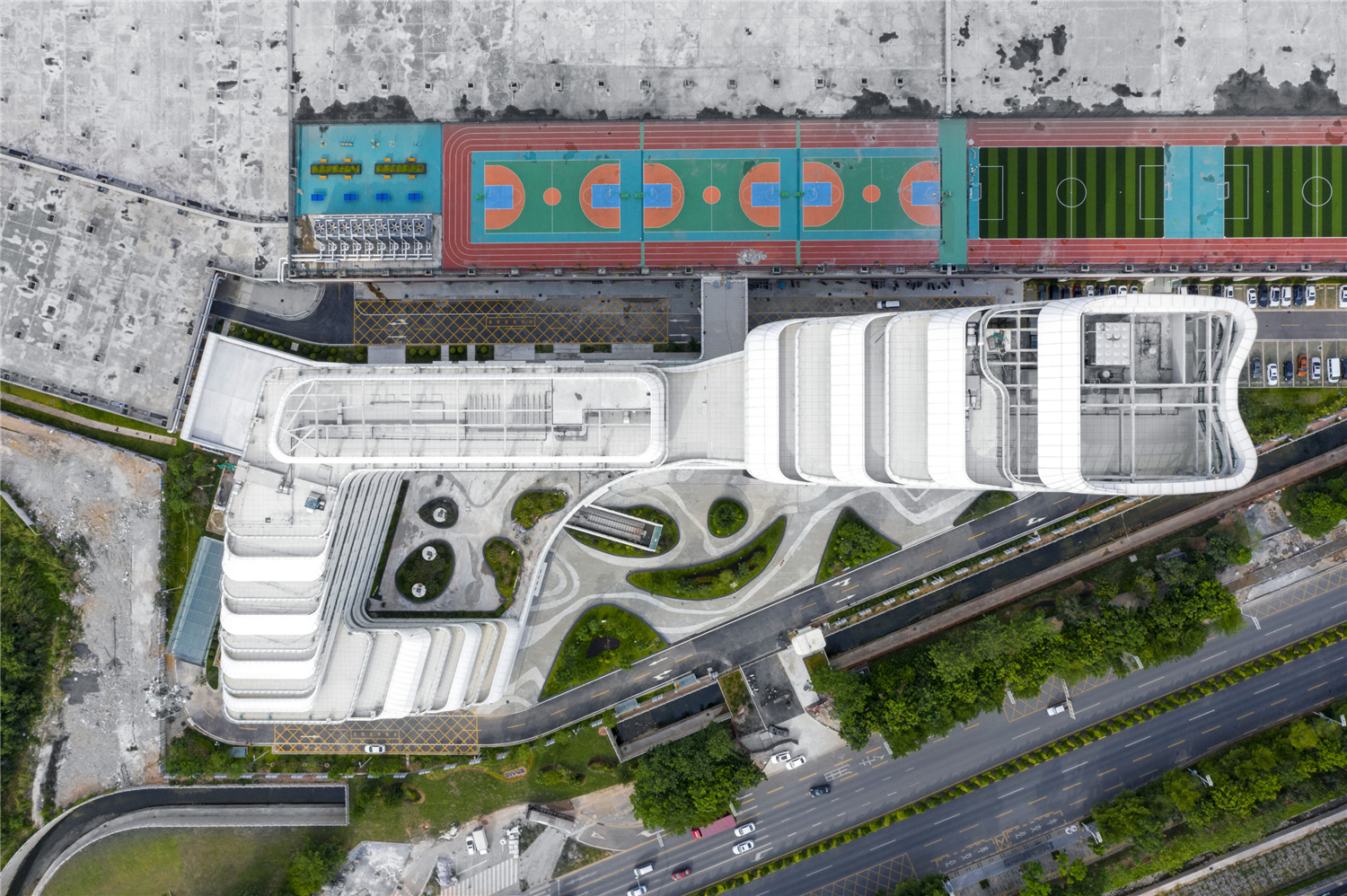 設(shè)計(jì)旨在在滿足功能需求的前提下,挖掘和演繹地鐵文化,令該建筑成為提升和展示深圳地鐵文化形象的創(chuàng)新標(biāo)桿。設(shè)計(jì)靈感來源于地鐵的文化及形象標(biāo)志,將“線性、速度、串聯(lián)”的地鐵性格特征進(jìn)行建筑形態(tài)及空間場所的演繹呈現(xiàn),整體效果不僅給人優(yōu)雅動(dòng)感的視覺沖擊力,而且很好地扮演了城市地鐵建筑形象標(biāo)志的角色。