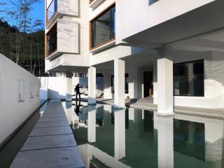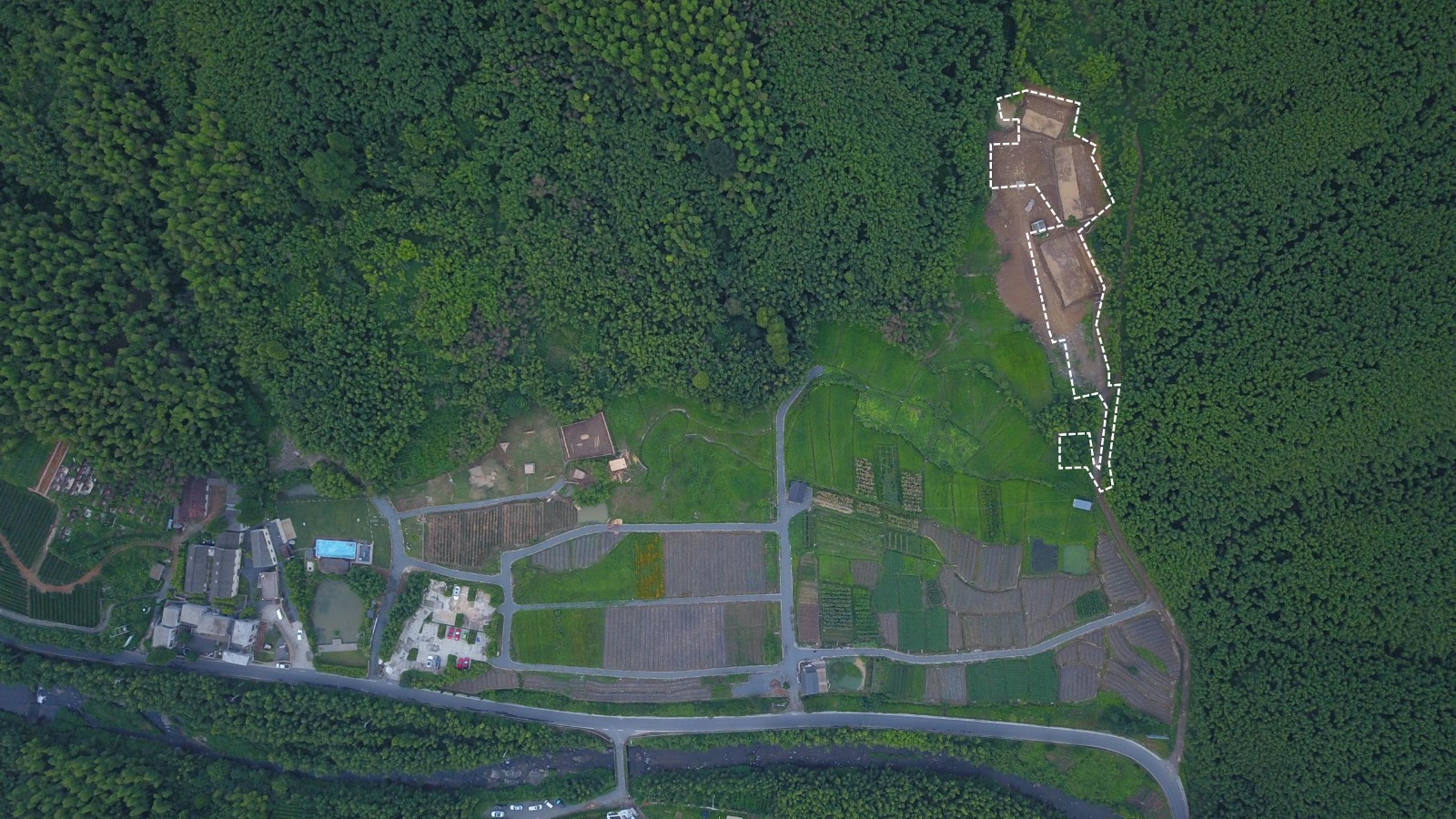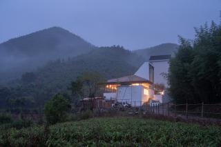 懷谷酒店場(chǎng)地位于莫干山中麓,基地狹長(zhǎng),延展于山坳一側(cè),背靠竹海,面向農(nóng)田,四周青山環(huán)繞,一條山溪在谷底淌過?;刈匀粭l件出眾,并且遠(yuǎn)離公路,需沿碎石小路步行數(shù)十米才能到達(dá),一路緩坡向上,直抵山坳最深處。