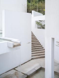 餐廳、泳池景色開闊壯美,騎樓庭院則更多呈現(xiàn)出圍合與變化,這些強(qiáng)烈的體驗(yàn)上的對(duì)比給酒店的公共空間帶來近與遠(yuǎn)、游走與停留的節(jié)奏,一條山溪更是將所有的空間與體驗(yàn)串聯(lián)在一起,形成了讓人難忘的山谷邊的風(fēng)景。